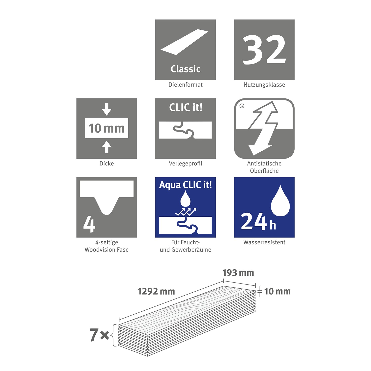 A csomag 1,745 m2 laminált padlót tartalmaz.