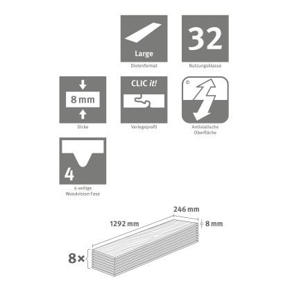 A csomag 2,543 m2 laminált padlót tartalmaz.