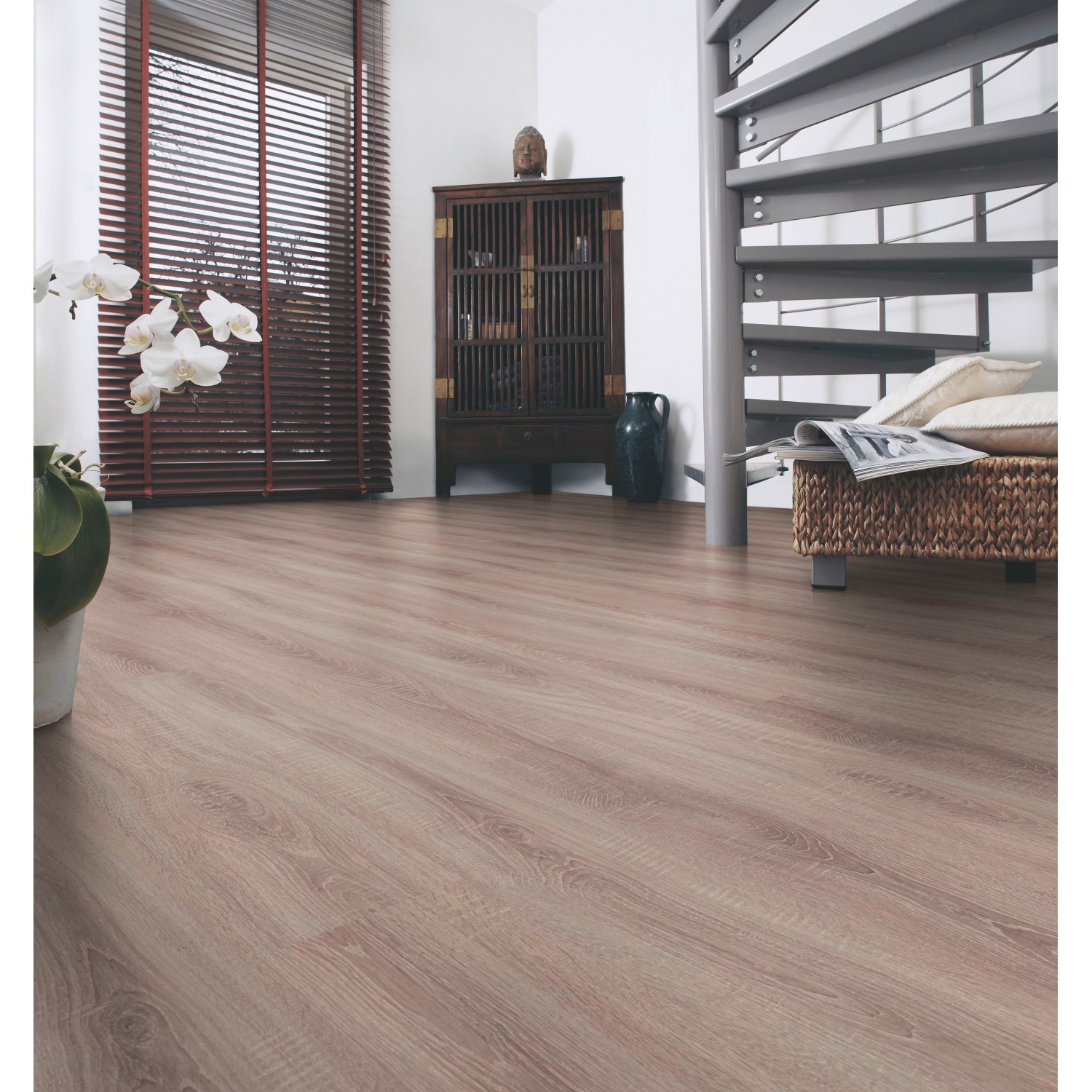 A laminált padló igényes tölgy-díszítéssel nyűgöz le, amely különösen autentikus, és minden helyiséget a lehető legjobban kiemel. A jellegzetes mintázatnak és szerkezetnek köszönhetően a fautánzatot alig lehet megkülönböztetni a valódi fapadlótól. A világos színárnyalat és a régi faszerkezet különösen rusztikus megjelenést kölcsönöz lakóterének. A sima, egysávos megjelenés vonzó összképet biztosít, és a színvilágának köszönhetően a laminált padló szinte bármilyen stílussal kombinálható. A fugamentes lerakásnak köszönhetően a laminált padló egységes és harmonikus képet nyújt.