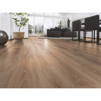 A laminált padló igényes tölgy-díszítéssel nyűgöz le, amely különösen autentikus, és minden helyiséget a lehető legjobban kiemel. A jellegzetes mintázatnak és szerkezetnek köszönhetően a fautánzatot alig lehet megkülönböztetni a valódi fapadlótól. A világos színárnyalat és a régi faszerkezet különösen rusztikus megjelenést kölcsönöz lakóterének. A sima, egysávos megjelenés vonzó összképet biztosít, és a színvilágának köszönhetően a laminált padló szinte bármilyen stílussal kombinálható. A fugamentes lerakásnak köszönhetően a laminált padló egységes és harmonikus képet nyújt.