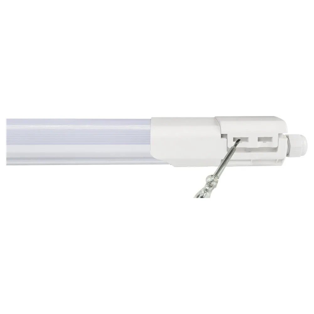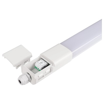 A LED Plus3 L lámpatest 48W egy erős és megbízható vízálló lámpatest magas, 7600 lm fényteljesítménnyel és IP65 védettségi osztállyal. Különösen praktikus a fény színének beállítása egy kapcsolóval 3000K, 4000K és 6000K között. Az acélból készült szerelőklipszek gyors és egyszerű szerelést tesznek lehetővé. A méretei (szél. x hossz. x mag.): 1495x52x41 mm.