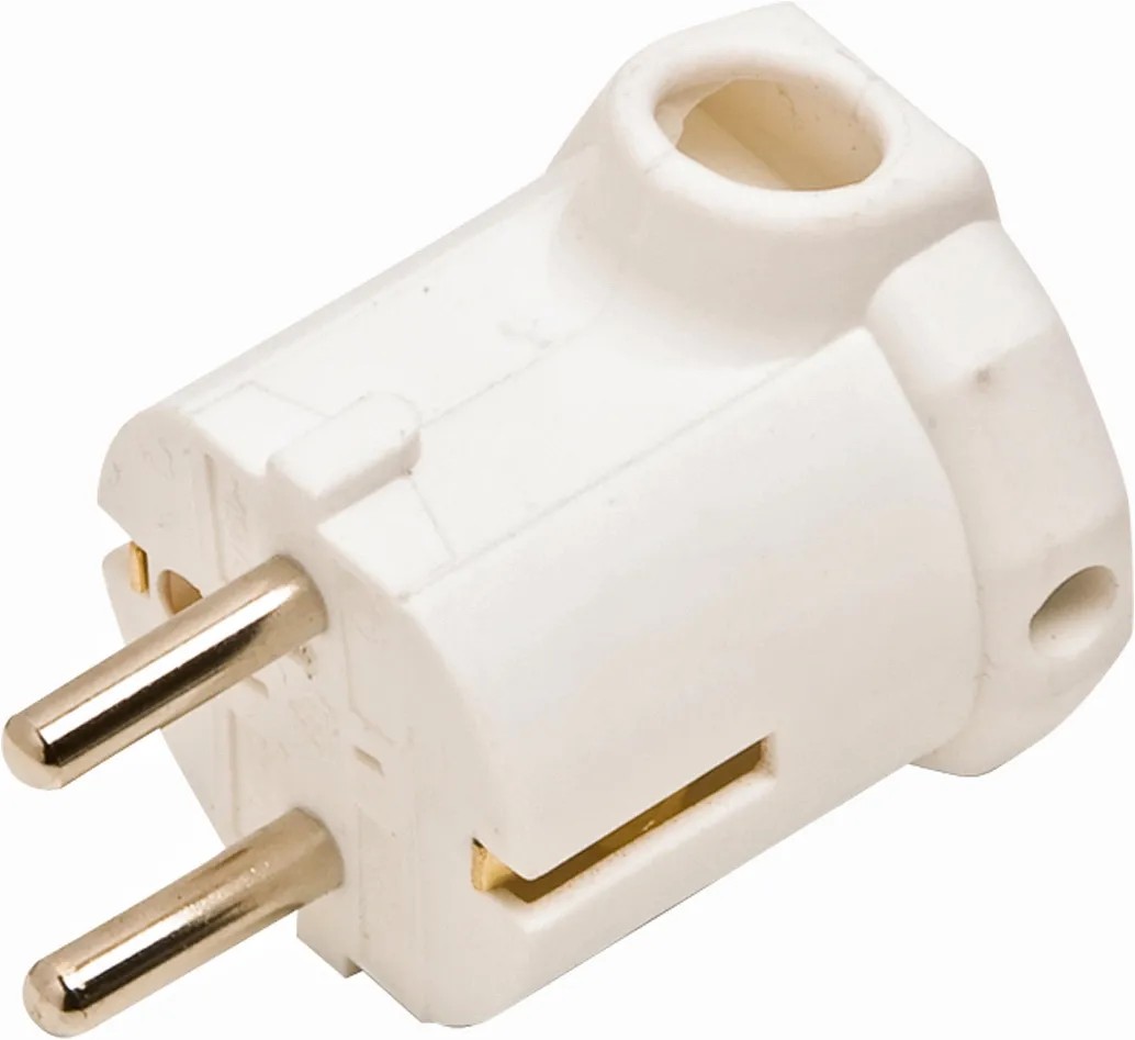 A műanyagból készült, fehér védőérintkezős lapos csatlakozó a kevés hellyel rendelkező csatlakozóaljzatokhoz használható. Így a lapos csatlakozó például szekrények mögött vagy akár falmélyedésekben használható. Az érintkezők ónozott vörösrézből készültek. A névleges feszültség 230 V, miközben a névleges áramerősség 10 A és 16 A között van. Emellett a dugós csatlakozó oldalsó kábelbevezetéssel, valamint 2 pólusú kapcsolással rendelkezik. Beltéri használatra alkalmas.