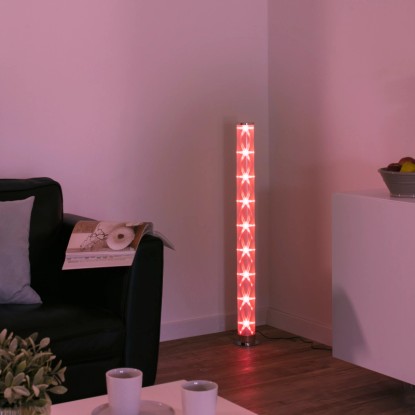A Bingo LED-es állólámpa hatékony fényjátékával nyűgöz le, és egyszerű megjelenésével harmonikusan illeszkedik minden lakóhelyiségbe. A lámpa infravörös távirányítóval rendelkezik. A lámpa fényereje távirányítóval szabályozható, és emellett RGB+W színváltóval is felszerelt. 3000 Kelvin melegfehér fényszínével meghitt hangulatot teremt otthonában ez az állólámpa. A memória funkció révén elmenti a kívánt beállításokat. A lábkapcsolóval kényelmesen be- és kikapcsolhatja a lámpát. Inspirálni fogja a lenyűgöző világítási élmény!
