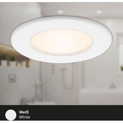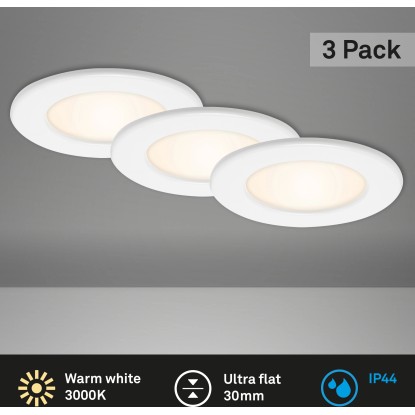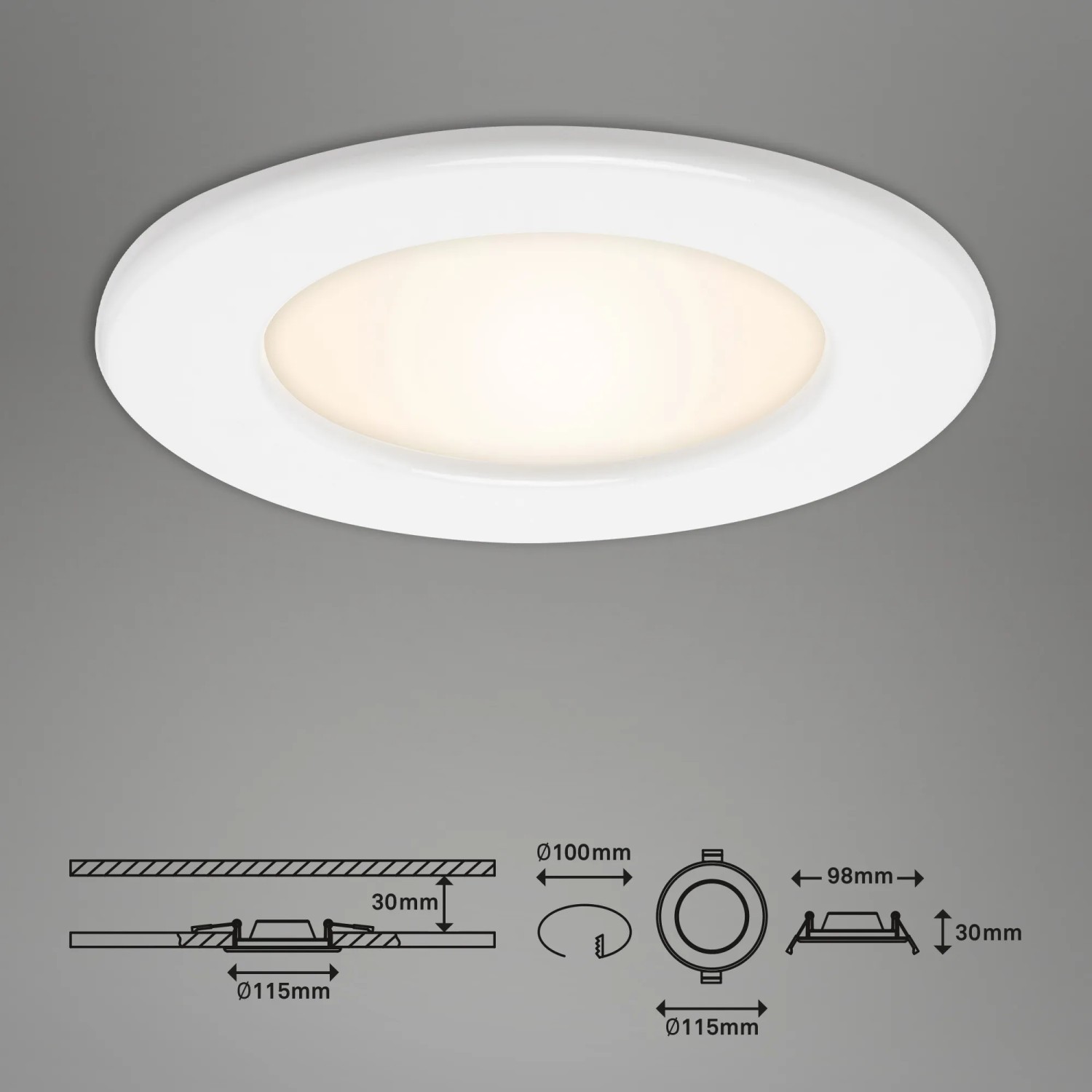 A Thin sorozat fehér színű Brilo LED-es süllyesztett lámpája 6 wattos, 450 lumen fényteljesítményű, fixen beépített LED-táblával rendelkezik. A lámpa melegfehér fényszínnel rendelkezik, és IP44 védettségi osztályú, fröccsenő víz elleni védelemmel rendelkezik, ezért fürdőszobákba is alkalmas. A süllyesztett lámpa praktikus három darabos szettben kapható.A beszerelési átmérője 100 mm a beszerelési magasság pedig 30 mm.