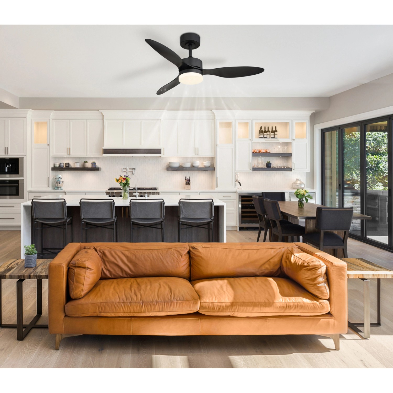 Mennyezeti ventilátor fém fekete, műanyag fehér/fekete, dimmelhető, több fokozat fali kapcsolóval, színrögzítés, memória, éjszakai fény, időzítő, távirányító, 15m2-re, : 1060 mm, M: 405 mm, LED20W 230V, 260-1800lm forrás, 170-800lm kimenet, CCT 2700-6500K