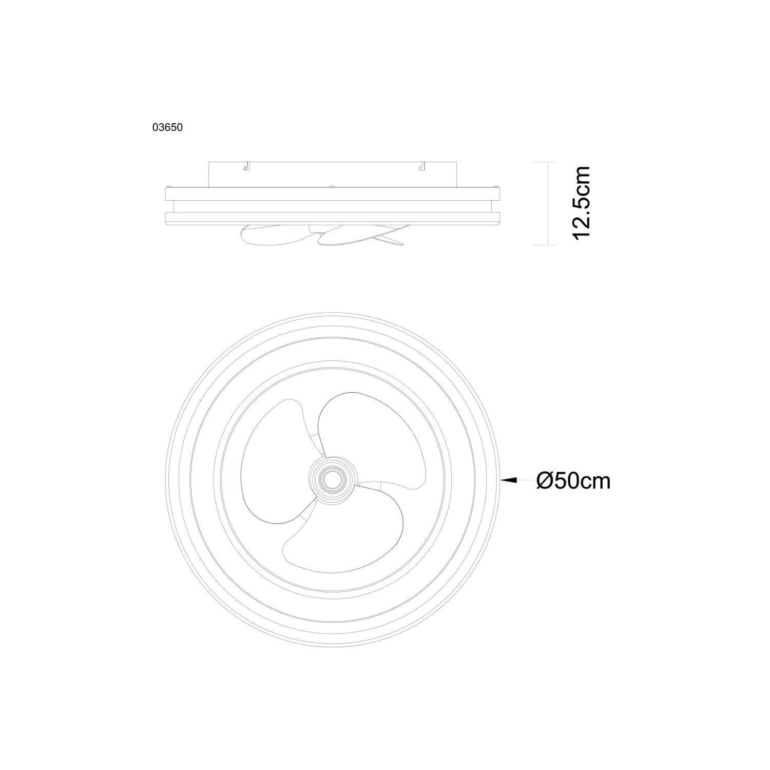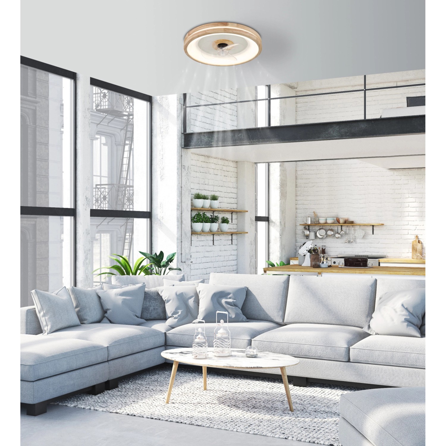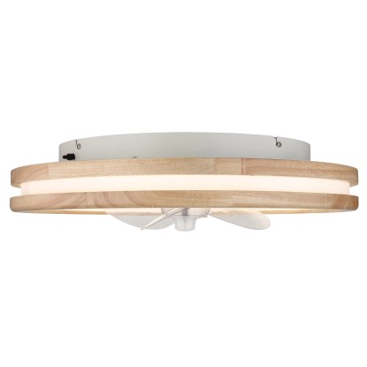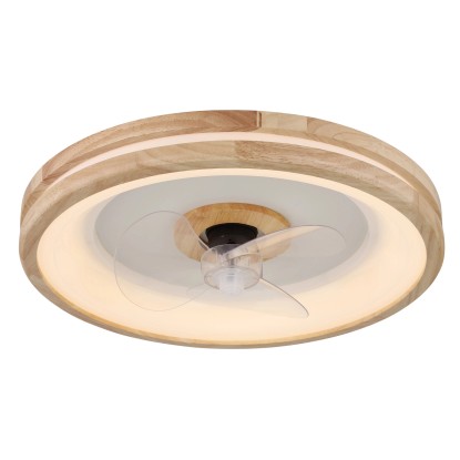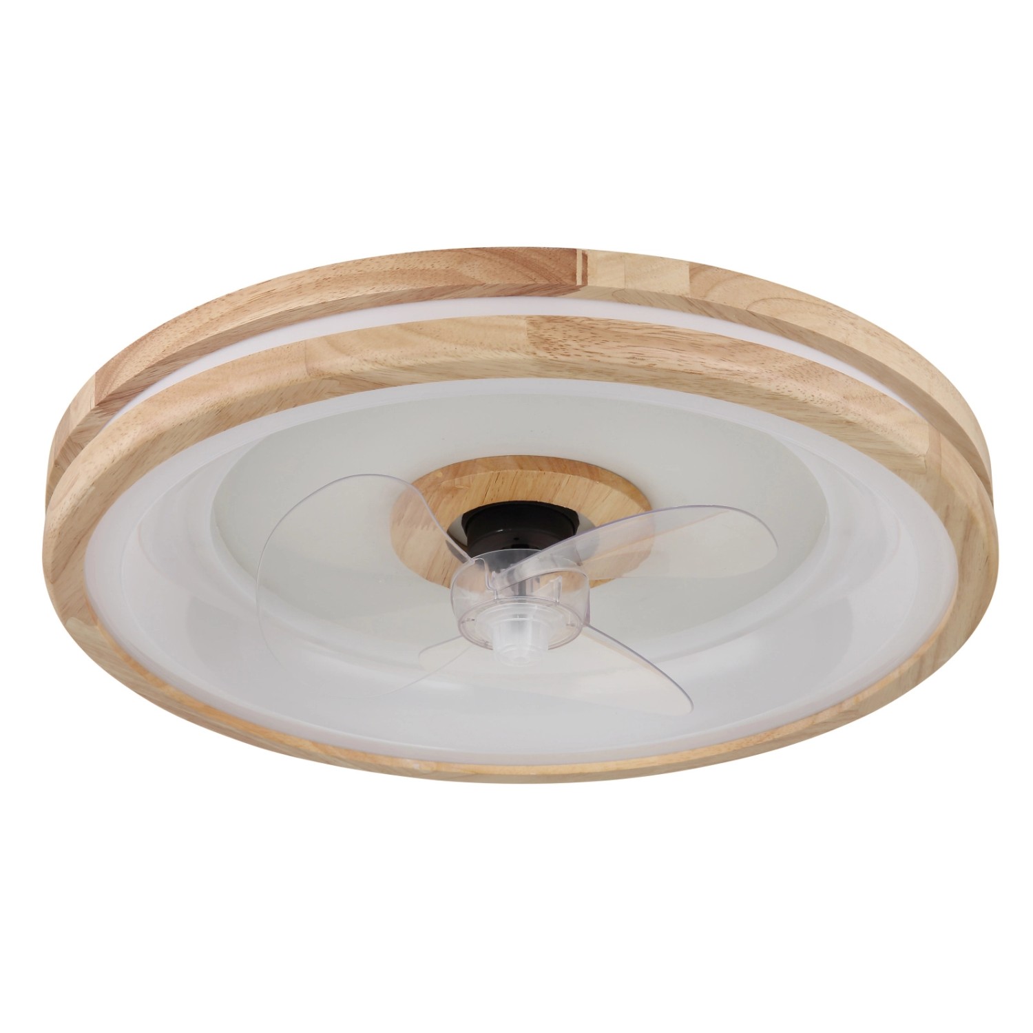Mennyezeti ventilátor fém fehér, fa, műanyag fehér/átlátszó, szabályozható, fali kapcsolóval több fokozatban, memória, időzítő, távirányító, 15m2, ø: 500 mm H: 25 mm, LED 30W 230V, 300-2250lm, CCT 2700K-6500K