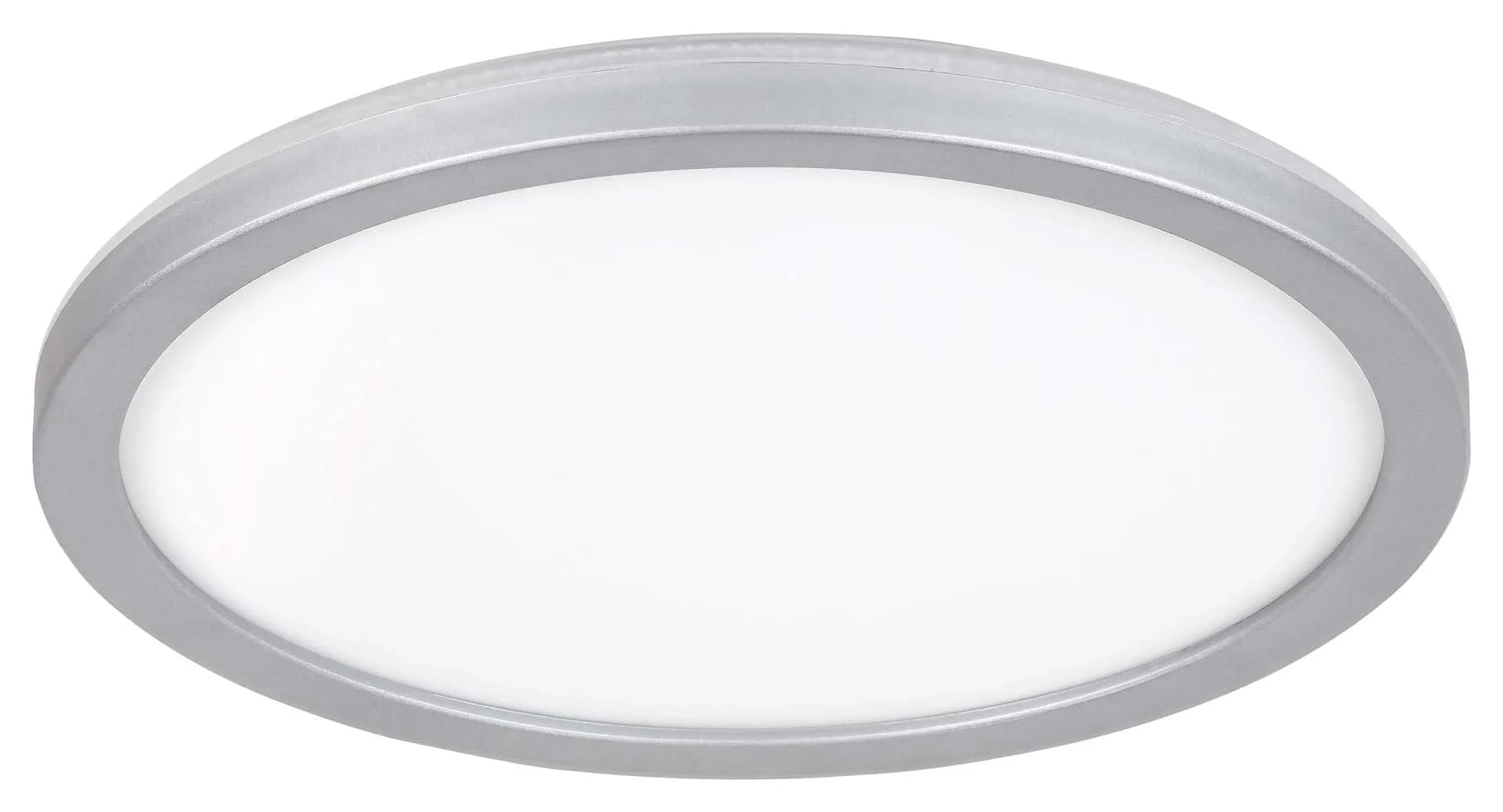 A funkcionális kialakítású, műanyagból készült Lambert mennyezeti lámpa a lakás szinte bármely helyiségébe remek választás lehet. Az ezüst, kerek modell IP44-es védettséggel rendelkezik, azaz apró méretű szilárd tárgyak, valamint fröccsenő víz ellen védett minden irányból. Ennek köszönhetően nemcsak a nappaliba vagy az előszobába ajánljuk, de akár a fürdőszobába is. A Lambert beépített LED fényforrással van ellátva, amelynek teljesítménye 15 W, fényereje 1500 lumen, élettartama 25 000 óra. A 4000 K színhőmérsékletű fényforrás természetes fehér fényt bocsát ki. A 280 mm átmérőjű mennyezeti lámpa extra vékony kialakítású, mennyezettől való távolsága mindössze 28 mm.