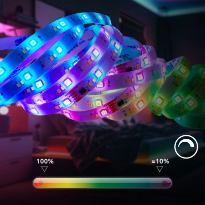 Az 5 m hosszú fénycsíkkal, RGBIC színmódokkal és állítható fehér tónusokkal (2700 - 6500 K) rendelkező rugalmas RGBIC LED-es fénycsík sokoldalú lehetőséget kínál a kreatív világítási megoldásokhoz és a hangulatos beltéri hangsúlyokhoz.