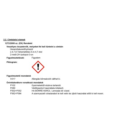 | Izotiazolinonra allergiásoknak is alkalmas: | Nem alkalmas |