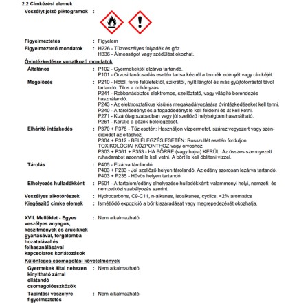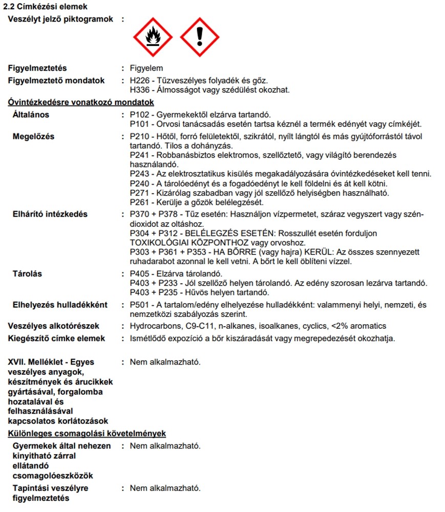 | Alk. gyermekjátékhoz (DIN EN 71-3 bevizsg.): | Gyermekjátékhoz nem alkalmas |