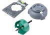 A Wolfcraft 3 részes teljes készlete minden szerszámot tartalmaz, amelyre szüksége lesz az üreges fali dobozok gipszkartonba történő tiszta és sikeres szereléséhez. Tartalmaz egy jelölő- és beállítósablont, egy 68 mm átmérőjű karbonacél lyukfűrészt és egy peremsüllyesztőt.