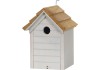 A fészekodú védelmet nyújt a vadmadarak számára a nyestekkel, macskákkal és egyéb természetes ellenségekkel szemben. Ugyanakkor szép látványt is nyújt a kertben vagy az erkélyen, köszönhetően világosszürke színének, valamint a fát idéző színben készült tetőzsindelyeknek. 32 mm átmérőjű berepülő nyílása széncinegék, házi verebek és csuszkák számára alkalmas. A csavar kioldásával felnyitható az elülső oldal, és megtisztítható a belső tér. A fészekodú 100%-ban FSC®-tanúsított erdeifenyőből készült. A fa szerkezete és erezete láthatóak. A fém füllel faágra vagy hasonlóan megfelelő helyre függeszthető.
