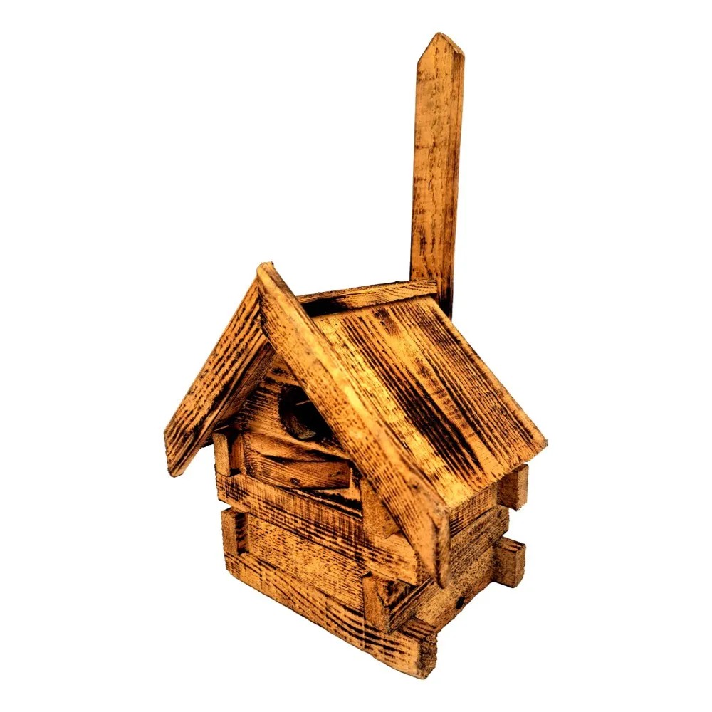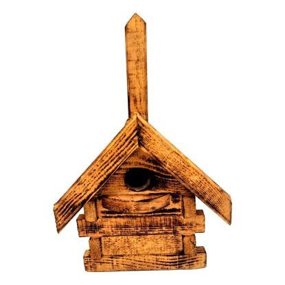 Fából készült madáretető. Klasszikus dizájn, akasztható kivitelben. Segítség a madaraknak a hideg hónapokban.