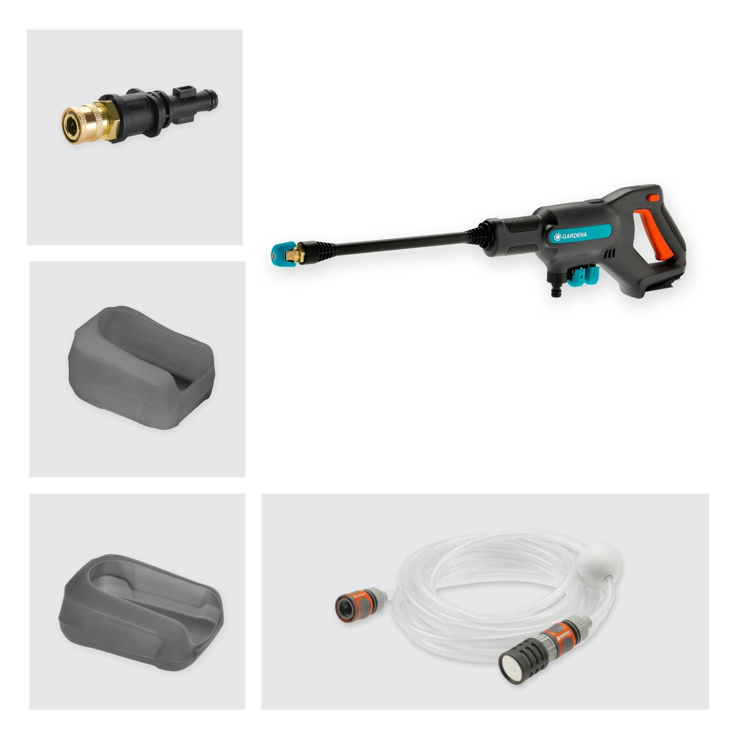 A GARDENA bemutatja az AquaClean 24 / 18V P4A mosót, amelyet kimondottan neked és a többi büszke és szenvedélyes ház- és kerttulajdonosnak készítettünk. Szenvedély, melyet a GARDENA táplál. Osztályában az egyik legsokoldalúbb magasnyomású mosó beépített LED-es töltöttségjelzővel és három fokozatba állítható (9, 14 és 24 bar) nyomással. Ideális a magas nyomáson elvégzendő feladatokhoz. Autókat, bicikliket és szemeteskukákat is alaposan megtisztít a 24 baros nyomás. Szükség esetén a nyomás 14 bar értékre csökkenthető vagy akár még alacsonyabbra, a kímélő üzemmódra. A 9 baros kímélő üzemmód különösen gyengéd és ideális választás érzékeny anyagokhoz és tárgyakhoz. A csökkentett nyomás mellett megnő az újratölthető akkumulátor üzemideje. A magasnyomású mosó kb. 38, 20 vagy 16 percig működik a kiválasztott üzemmód függvényében. Az új nagynyomású mosó akkumulátor és töltő nélkül is kapható. Használhatod vele a POWER FOR ALL ALLIANCE - amely a világ vezető gyártóinak egyik legnagyobb, márkákon átívelő akkumulátor-szövetsége - akkumulátor-rendszerét. Ezek az akkumulátorok számos kerti és otthoni eszközzel kompatibilisek. Szeretnél inkább egy akkumulátoros terméket vásárolni? Nem probléma! Válaszd a Készletet. Az akkumulátor nélkül kapható AquaClean 24 / 18V termékhez három különböző fúvókát adunk. A fúvókákkal 15 fok vagy 40 fokra beállíthatod a mosás szögét, és minden egyes fúvóka 360 fokban körbeforgatható a rúdon, ami még rugalmasabb felhasználhatóságot jelent. A 0 fokos pontfúvóka ideális választós kis rések és repedések erőteljes tisztításához. Az AquaClean kompatibilis a GARDENA egyéb tisztító eszközeivel, ha arra lenne szükséged. A készletben szintén megtalálható az 5 m hosszú szívótömlő szűrővel és tömlőbilinccsel. Használd az OGS tömlőcsatlakozót a vízcsaphoz történő csatlakoztatáshoz. Bár nem csatlakozik az áramellátáshoz, a modern AquaClean olyan erős, hogy akár 2 m mélyről is felszív óránként 250 l vizet automata szívófunkciójának köszönhetően. Mindegy, hogy az autót, a biciklit, a teraszt, a redőnyöket vagy a kerti bútort szeretnéd megtisztítani - intelligens kivitelének, egyszerű kezelhetőségének és kis, akkumulátor nélkül mindössze 1,5 kg-os súlyának köszönhetően a nagynyomású mosó kényelmesen használható még hosszabb időn át is. Az AquaClean 24 / 18V P4A rövid és hosszú csövei még rugalmasabb alkalmazást és jobb ergonómiát tesznek lehetővé. Ezekkel az elemekkel ez a sokoldalú magasnyomású mosó könnyedén és zavaró kábelek nélkül segít a kert, a bicikli, az autó vagy a kerti bútor tisztán tartásában.