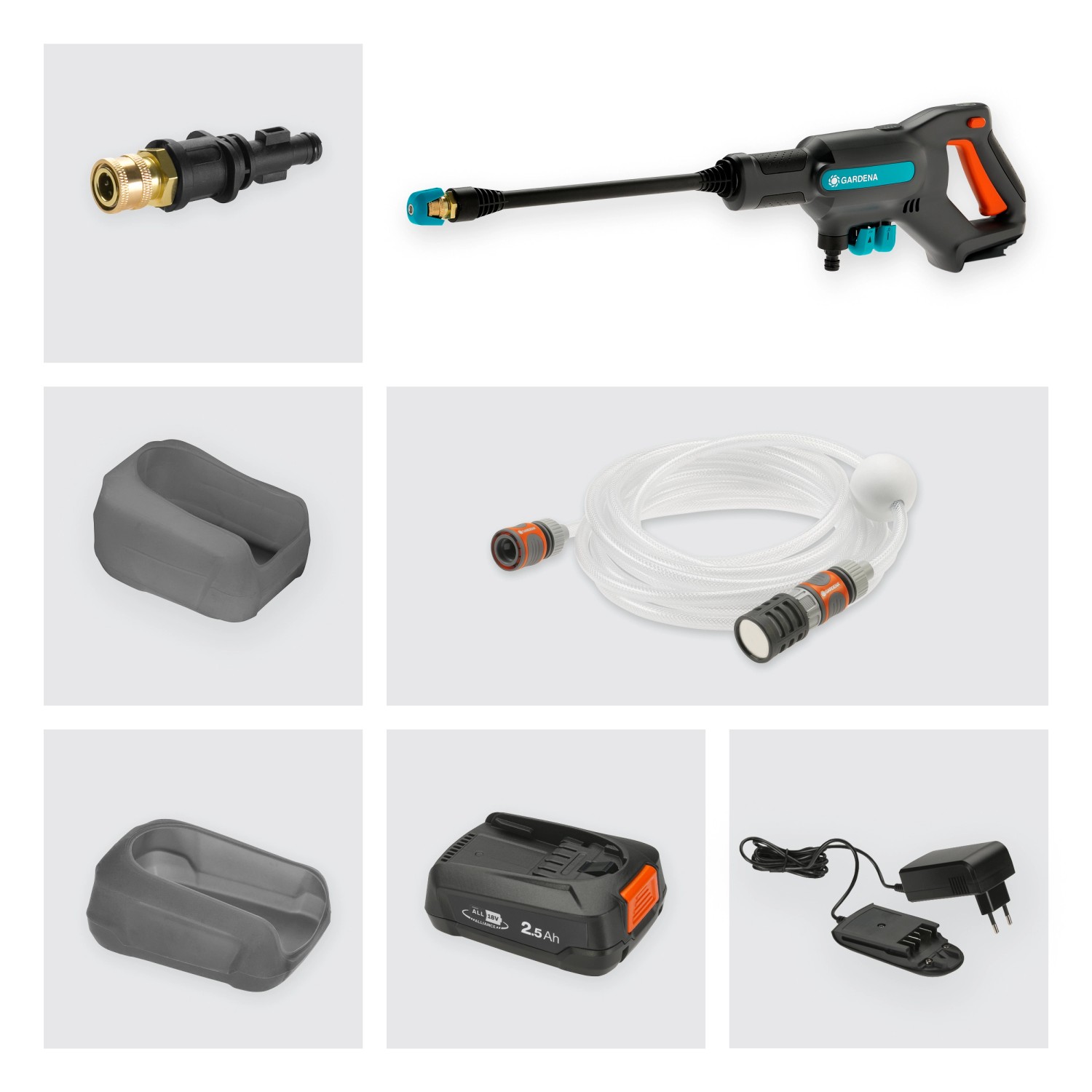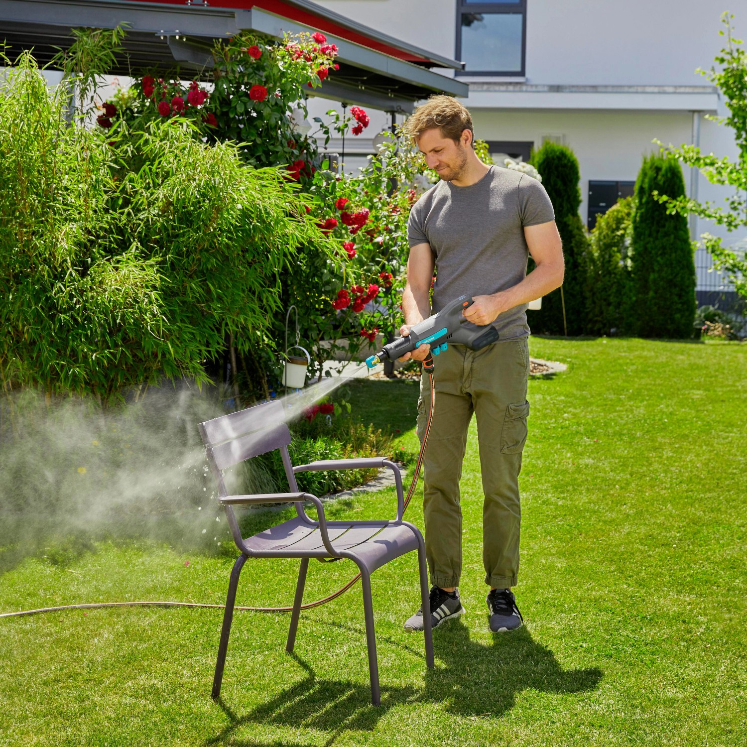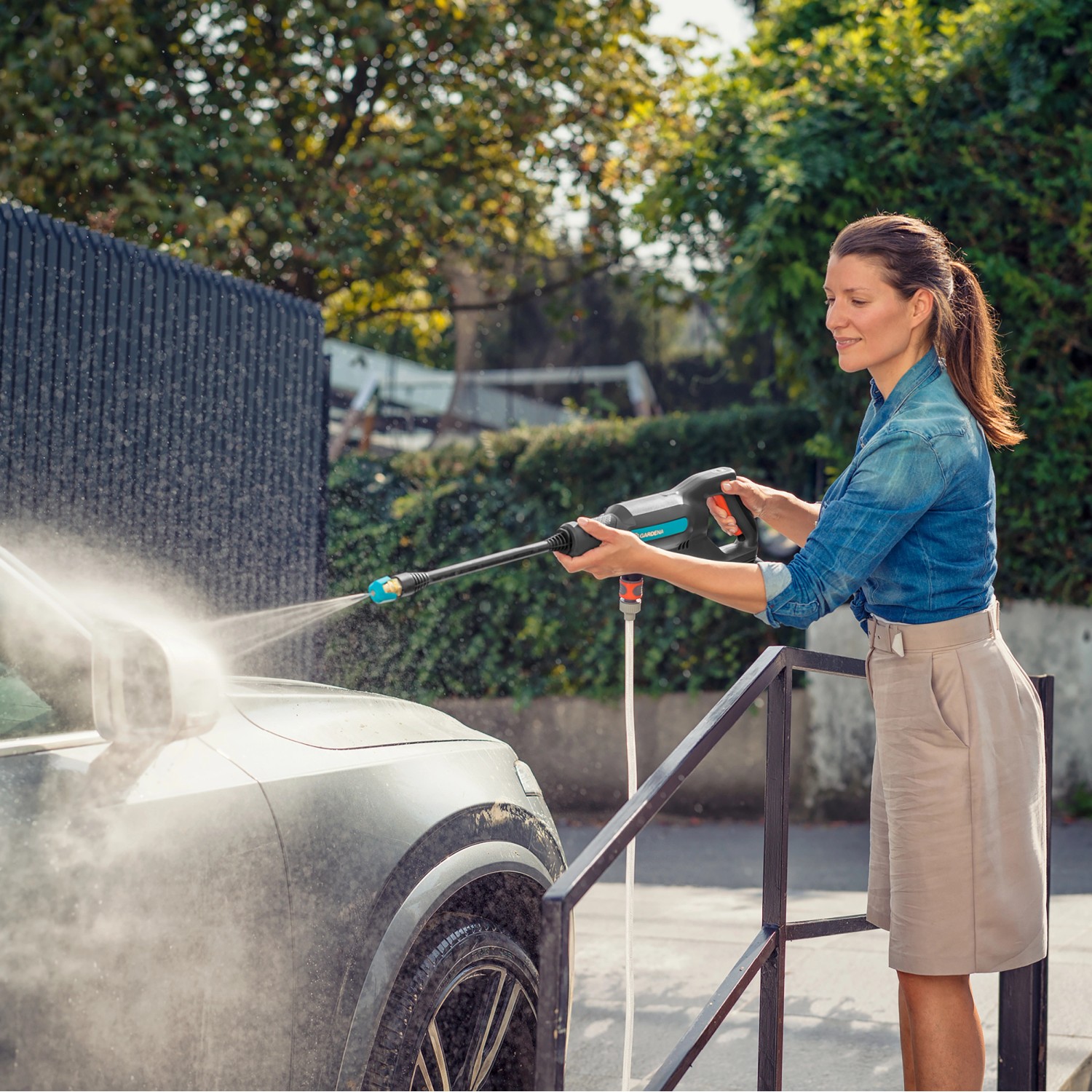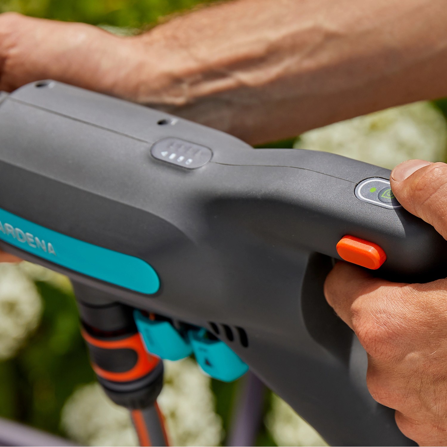 A GARDENA bemutatja az AquaClean 24 / 18V P4A készletet, amelyet kimondottan neked és a többi büszke és szenvedélyes ház- és kerttulajdonosnak készítettünk. Szenvedély, melyet a GARDENA táplál. Ez a mobil, kompakt és kábelmentes magasnyomású mosó számtalan tartozékkal kapható, hogy azonnal munkához láthass. Osztályában az egyik legsokoldalúbb magasnyomású mosó beépített LED-es töltöttségjelzővel és három fokozatba állítható (9, 14 és 24 bar) nyomással. Ideális a magas nyomáson elvégzendő feladatokhoz. Autókat, bicikliket és szemeteskukákat is alaposan megtisztít a 24 baros nyomás. Szükség esetén a nyomás 14 bar értékre csökkenthető vagy akár még alacsonyabbra, a kímélő üzemmódra. A 9 baros kímélő üzemmód különösen gyengéd és ideális választás érzékeny anyagokhoz és tárgyakhoz. A csökkentett nyomás mellett megnő az újratölthető akkumulátor üzemideje. A magasnyomású mosó kb. 38, 20 vagy 16 percig működik a kiválasztott üzemmód függvényében. Az új magasnyomású mosó az új, 18V POWER FOR ALL akkumulátor-rendszerrel működik. A POWER FOR ALL ALLIANCE a világ vezető gyártóinak egyik legnagyobb, márkákon átívelő akkumulátor-szövetsége, amely az otthoni és kertészeti alkalmazások legnagyobb választékát kínálja. A hosszú akkumulátor üzemidőnek köszönhetően alaposan és szünet nélkül tisztíthatsz. A Készletben lévő újratölthető akkumulátor használható a POWER FOR ALL ALLIANCE más, kompatibilis eszközeivel. Az akkumulátor gyorsan feltölt 18 V-on és 2,5 Ah-n. A készletben három különböző fúvóka található. A fúvókákkal 15 fok vagy 40 fokra beállíthatod a mosás szögét, és minden egyes fúvóka 360 fokban körbeforgatható a rúdon, ami még rugalmasabb felhasználhatóságot jelent. A 0 fokos pontfúvóka ideális választás kis rések és repedések erőteljes tisztításához. Az AquaClean kompatibilis a GARDENA egyéb tisztító eszközeivel, ha arra lenne szükséged. A készletben szintén megtalálható az 5 m hosszú szívótömlő szűrővel és tömlőbilinccsel. Használd az OGS tömlőcsatlakozót a vízcsaphoz történő csatlakoztatáshoz. Bár nem csatlakozik az áramellátáshoz, a modern AquaClean olyan erős, hogy akár 2 m mélyről is felszív óránként 250 l vizet automata szívófunkciójának köszönhetően. Mindegy, hogy az autót, a biciklit, a teraszt, a redőnyöket vagy a kerti bútort szeretnéd megtisztítani - intelligens kivitelének, egyszerű kezelhetőségének és kis, akkumulátor nélkül mindössze 1,5 kg-os súlyának köszönhetően a nagynyomású mosó kényelmesen használható még hosszabb időn át is. Az AquaClean 24 / 18V P4A Készlet rövid és hosszú csövet is tartalmaz a még nagyobb rugalmasságért és a továbbfejlesztett ergonómiáért. Ezekkel az elemekkel ezzel a jól alkalmazható magasnyomású mosóval könnyedén és bosszantó vezetékek nélkül tisztán tarthatod a kertet, a biciklit, az autót vagy a kerti bútorokat.
