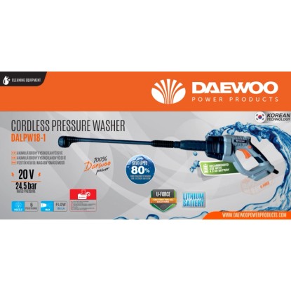 DAEWOO DALPW18-1 lítium akkumulátoros magasnyomsású a U-Force termékcsaládunk tagja. Az akkus termékcsaládunk széles termékpalettával rendelkezik keri és barkács gépekben. Ne habozzon megvásárolni, mivel ideális kiegészítője a munkájának.
