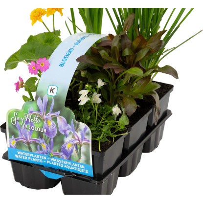 Tavi és vizi növények többféle virágzó. Kerti tavak gazdagítására. Különböző fajtákban, pl.: mocsári kockásliliom, kafferliliom. Kb 9-18 cm-es cserépben. 6 db/tálca