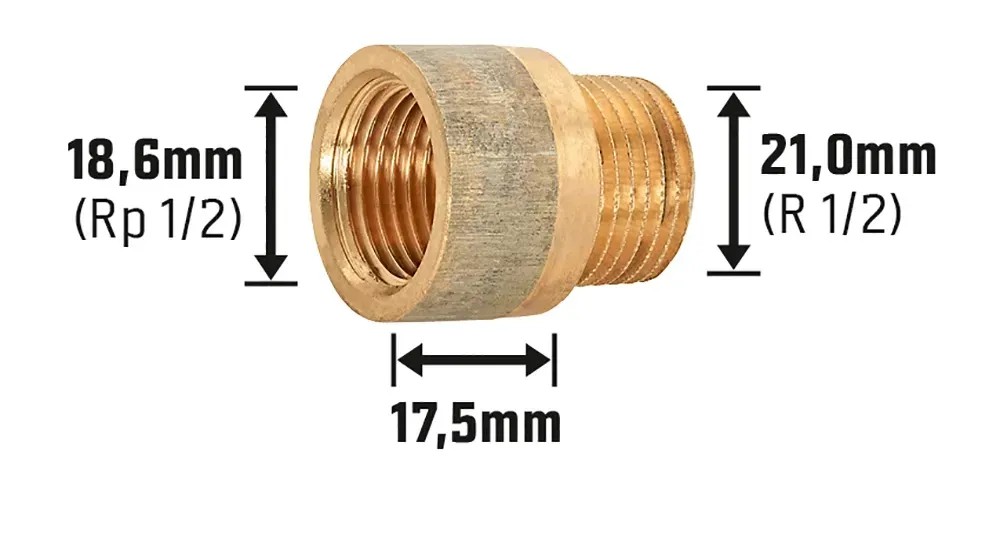 Csaphosszabbító 18,6 mm (Rp 1/2) x 21 mm (R 1/2) vörösöntvény 17,5 mm 10 darab
