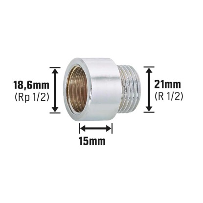 OBI csaphosszabbító 18,6 mm (R 1/2) x 21 mm (R 1/2) krómozott sárgaréz 15 mm