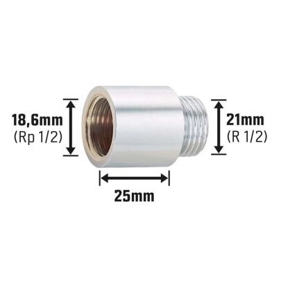 OBI csaphosszabbító 18,6 mm (Rp 1/2) x 21 mm (R 1/2) krómozott sárgaréz 25 mm