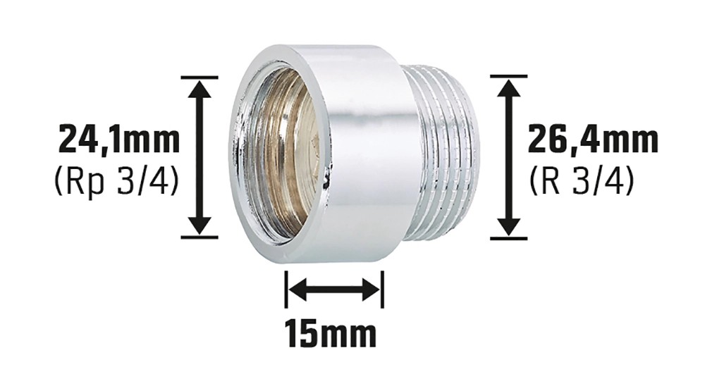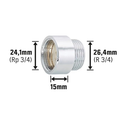 OBI csaphosszabbító 24,1 mm (Rp 3/4) x 26,4 mm (R 3/4) krómozott sárgaréz 10 mm