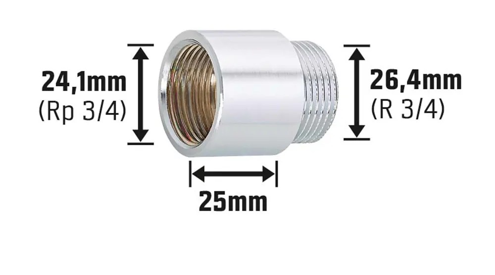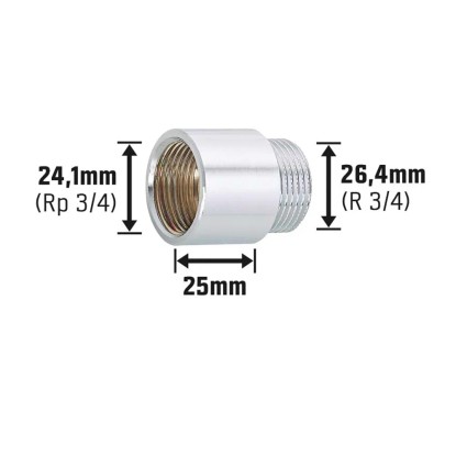 OBI csaphosszabbító 24,1 mm (Rp 3/4) x 26,4 mm (R 3/4) krómozott sárgaréz 25 mm