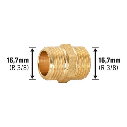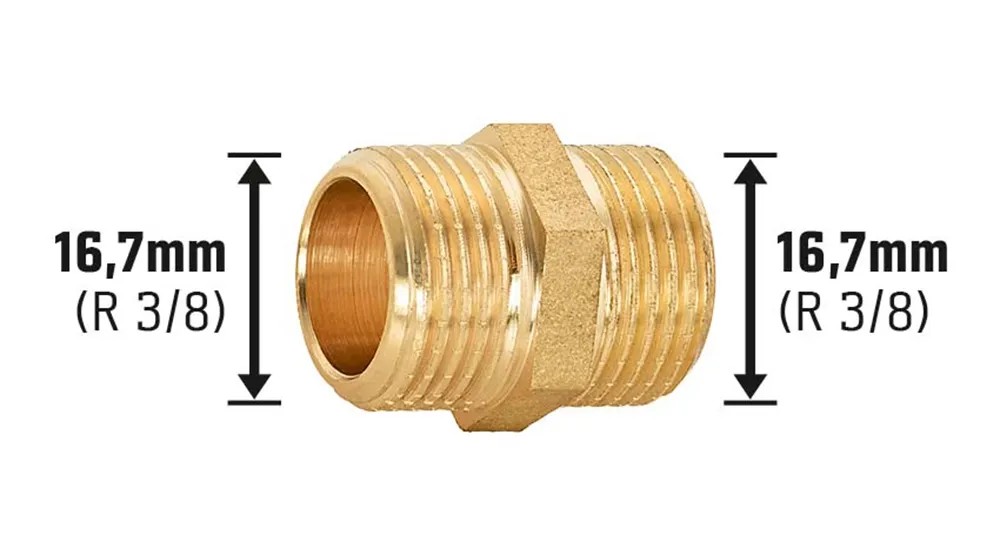 A szerelvény két egyforma külső menettel rendelkezik. A menet mérete 16,7 mm (R 3/8). A csavarzatokkal lehet egyszerűen a csőcsatlakozókra szerelni. Az ivóvízzel kapcsolatos rendelkezések alapján alkalmazása engedélyezett az ivóvízvezetékek szerelésekor.