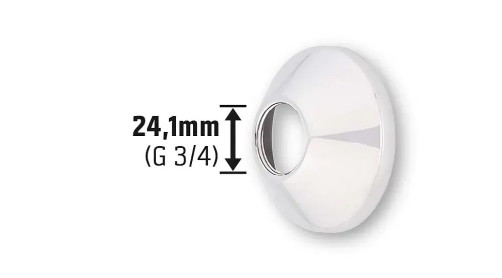A dekoratív OBI takarórózsa mutatósan takarja el a fali szerelvények csőcsatlakozásait. Praktikus tartozék, amely a hideg és meleg vizes vezetékek fektetésekor, valamint a fűtés szerelésekor használatos. A pontos rácsavarozáshoz 24,1 mm-es (G 3/4) belső menettel rendelkezik. Anyaga krómozott fém. Könnyen kezelhető és karcálló. A takarórózsa magassága 26 mm.