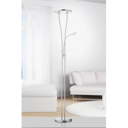 A Helia LED-es mennyezet-megvilágító állólámpa futurisztikus kialakításával nyűgöz le. Az acélból készült lámpa fényforrásai külön kapcsolhatók. A kerek lámpafej fényereje is szabályozható. A fej különleges fénypontja a mozgatható, szögletes fényforrás. Fénye felfelé vagy lefelé irányítható. A lámpafejben lévő külső fényforrás nem mozgatható, és szatinált akrilüvegén keresztül csak felfelé világít. Az olvasólámpa rugalmas karjának köszönhetően tetszés szerint állítható.