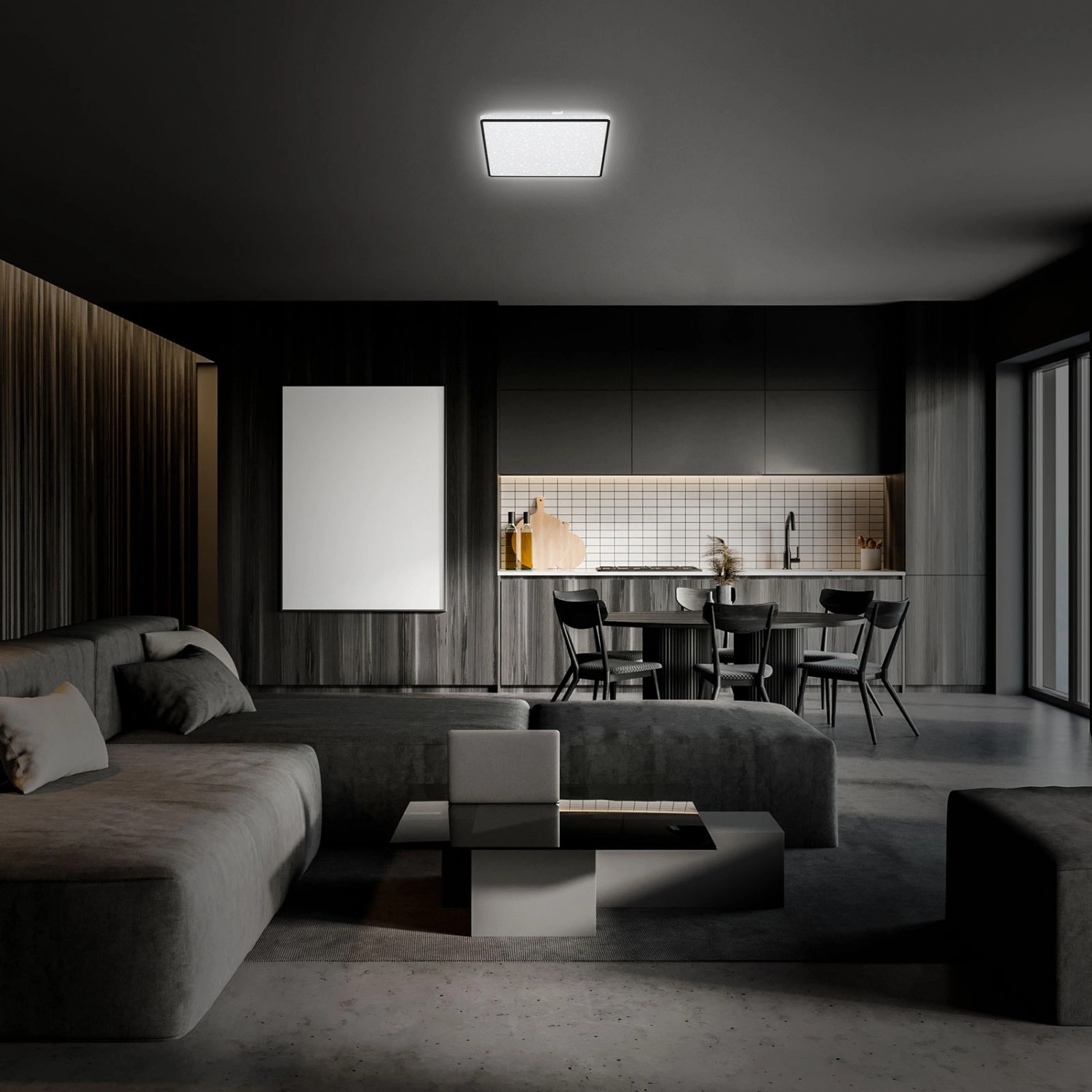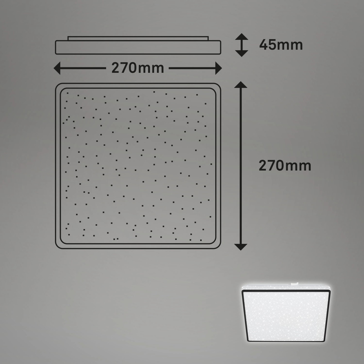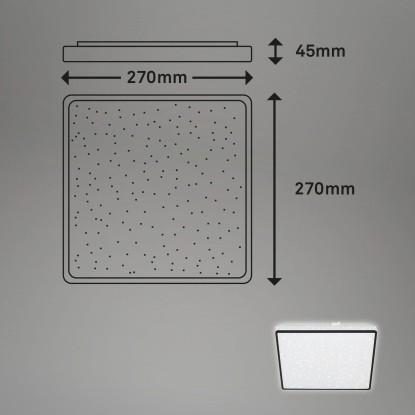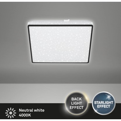 A Brilo szögletes LED-es mennyezeti lámpa csillaghatásával és fekete keretével minden lakóteret elvarázsol. A beépített LED tábla teljesítménye 15 watt és 1800 lumen. A fényhőmérséklet 4000 Kelvin, ami semleges fehér fényt ad a lámpának. Ezenkívül az izzó dekoratív háttérvilágítással és hosszú, 25 000 órás élettartammal rendelkezik.