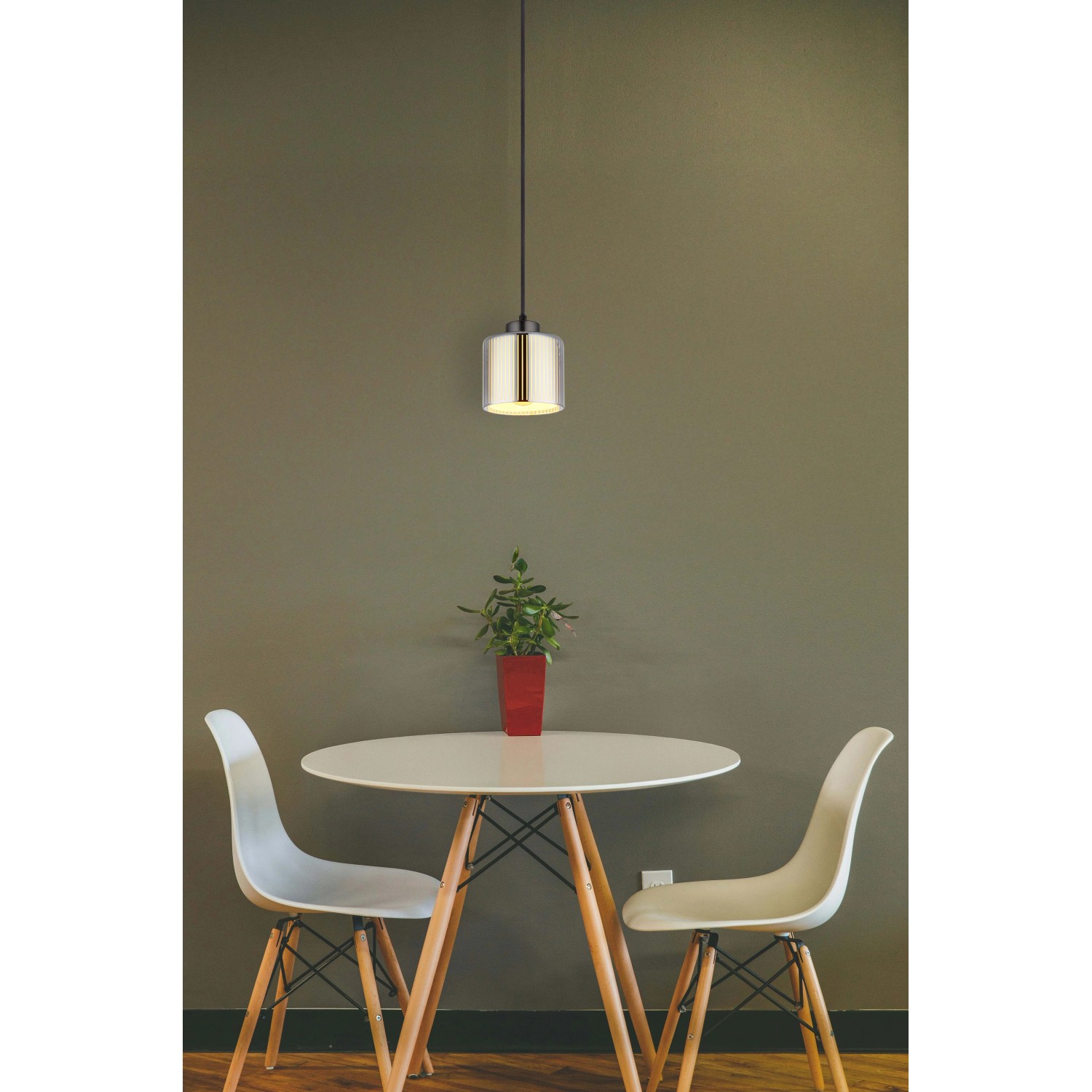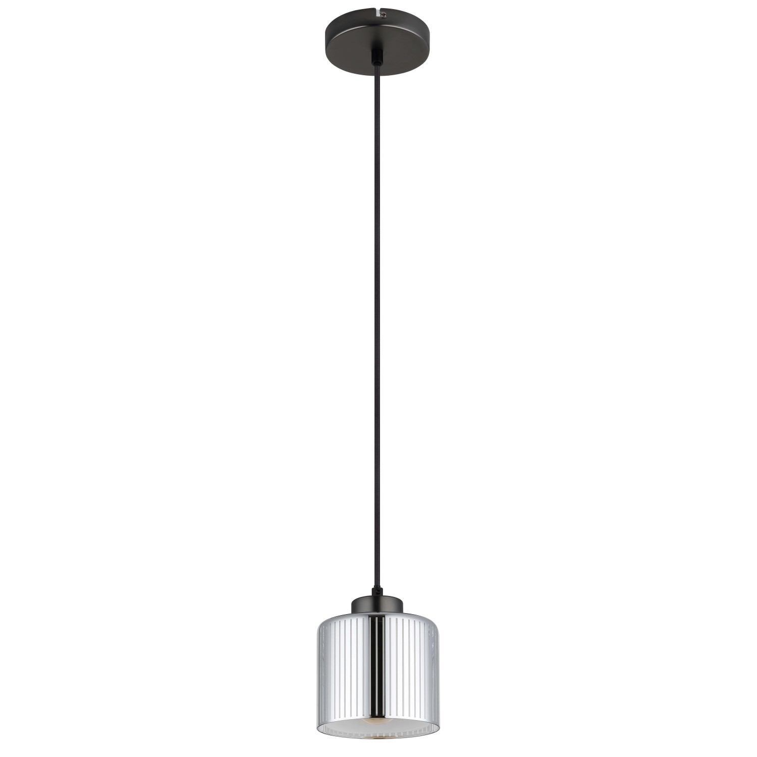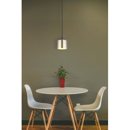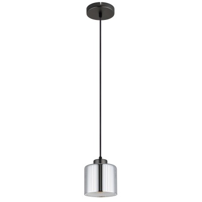Függeszték 1-es, fekete-krómozott fém, krómozott üveg, fekete textil kábel, magassága állítható.