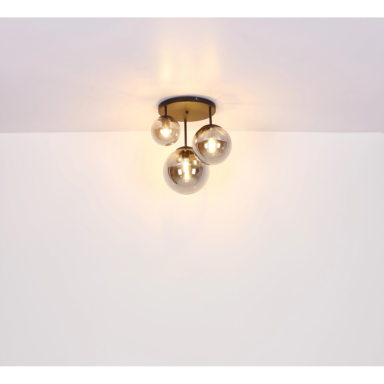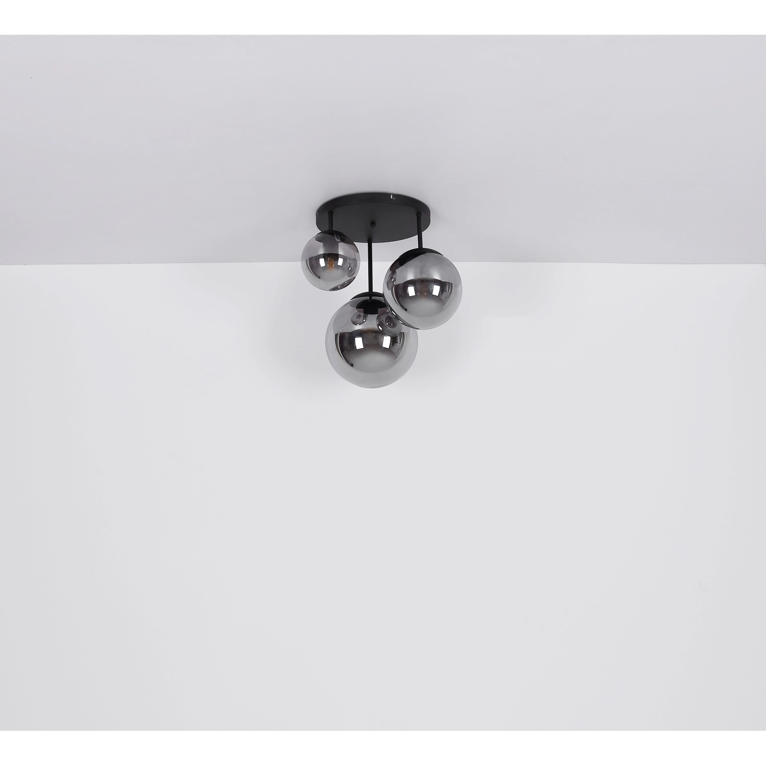A Joel sorozat mutatós mennyezeti lámpája mind a kicsiket, mind a nagyokat lenyűgözi. A fekete kerek mennyezeti tartóból a mennyezettől legfeljebb 44 cm-re lelógó három fémrúd vezet egy-egy E27-es foglalatig, amelyeket különböző méretű, tetszetős füstszínű búrák borítanak. Az E27 foglalatok lehetővé teszik, hogy a fény színét és erősségét tetszés szerint határozza meg akár 60 wattos maximális teljesítményig. Vigyen új hangsúlyt a helyiségeibe.