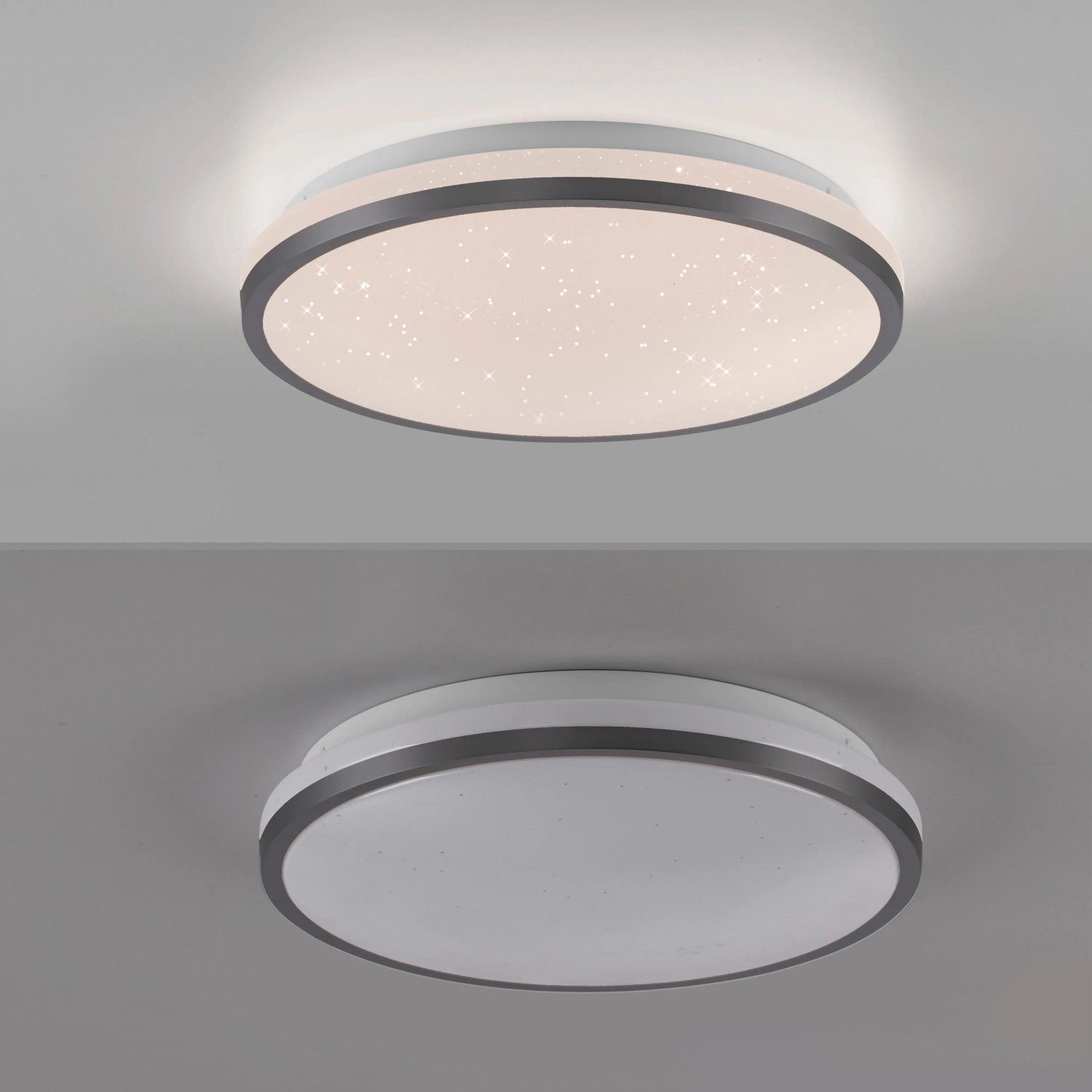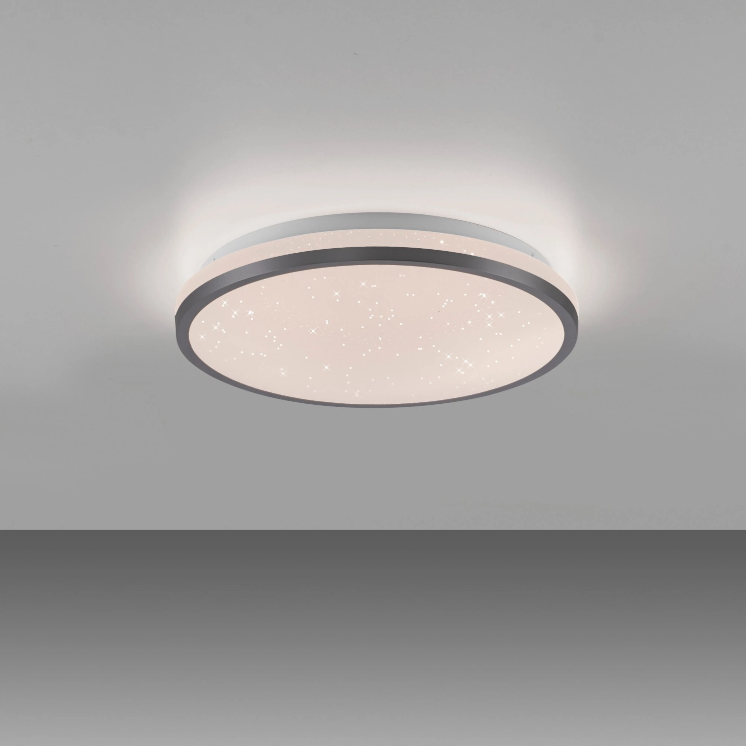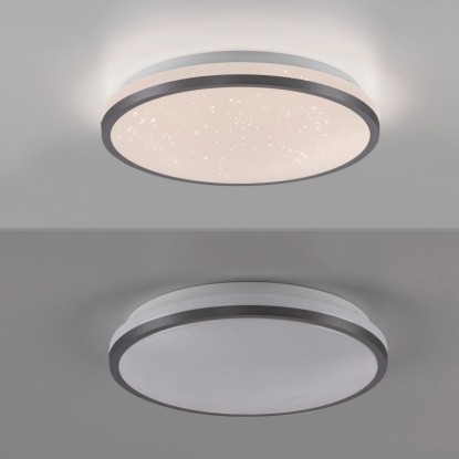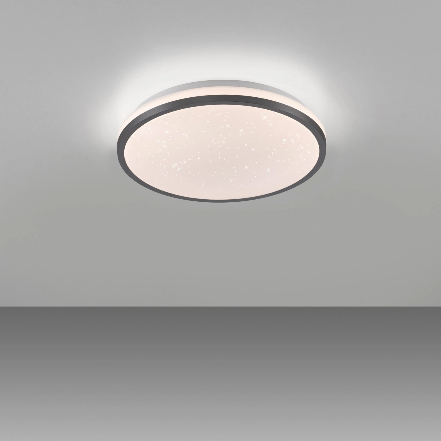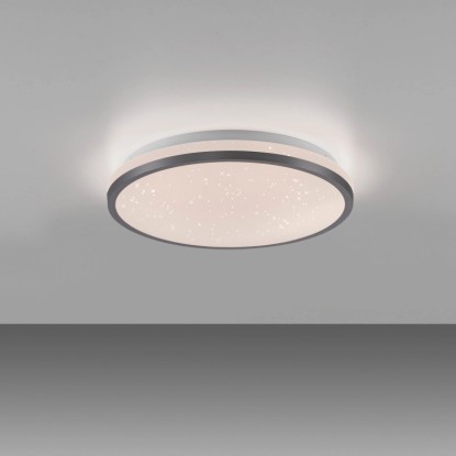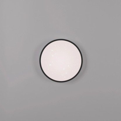 A fekete Kyle LED-es mennyezeti lámpa lenyűgöző csillagos égbolt megjelenéssel párosul. A lámpaburában található Starrysky funkció lágy csillagos égbolt fényt eredményez, amely romantikus és nyugodt hangulatot teremt a szobákban. Élvezze a varázslatos pillanatokat és felejthetetlen estéket saját csillagos égboltja alatt. A 28 cm-es mennyezeti lámpa beépített Switchmo technológiával rendelkezik, amely lehetővé teszi a fény háromféle fényerősség beállítását. A meleg fehér fényt a fénykapcsoló segítségével könnyedén beállíthatja 100%-ról 50%-ra, majd 10%-ra. Ez a funkció lehetővé teszi, hogy a fényt az Ön igényeihez igazítsa. A memóriafunkció az utoljára kiválasztott beállítást megtartja, amíg nem változtat rajta. Ez azt jelenti, hogy kedvenc beállítása gyorsan újra előhívható. A sokoldalú funkciókkal rendelkező, egyszerű kialakításának köszönhetően a mennyezeti lámpa számos nappaliban használható, és varázslatos csillagos égbolt hangulatot kölcsönöz a szobának.