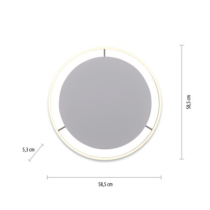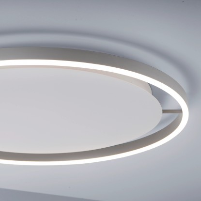A Ritus sorozathoz tartozó, alumíniumszürke színű Ritus LED-es mennyezeti lámpa nemcsak modern kialakításával nyűgöz le, hanem azzal is, hogy egy szokványos fali kapcsolóval három fokozatban szabályozható. Így a mennyezeti lámpa fényintenzitását (100% - 50% - 12%) mindig az egyéni igényeihez igazíthatja. A nappali lámpa egy LED-gyűrűből és egy középen elhelyezett, fehér burkolatból áll. A Ritus mennyezeti lámpával nagyszerű világító tárgyat kap elegáns megjelenéssel.