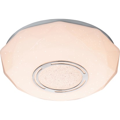 A fixen beépített LED-es technológia a színhőmérséklet melegfehér (3000 K) és hidegfehér (6000 K) közötti egyedi beállítását teszi lehetővé. Ezenkívül a csomagban található távirányítóval kényelmesen szabályozhatja a fényerőt. A megjelenés fénypontjaként a lámpa burkolatán néhány üvegkristály található, amelyek a színhőmérséklettől és a fényerőtől függően visszafogott fényhatásról gondoskodnak. A 24 wattos izzóval rendelkező, szép lámpa kellemes légkört teremt.