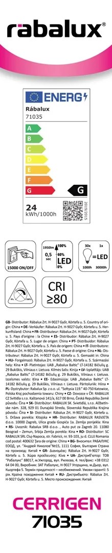 | Az izzó cserélhető: | Nem cserélhető izzó |