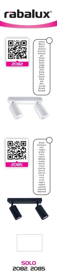 Rábalux Solo beltéri mennyezeti spot lámpa fehér GU10 2x MAX25W IP20