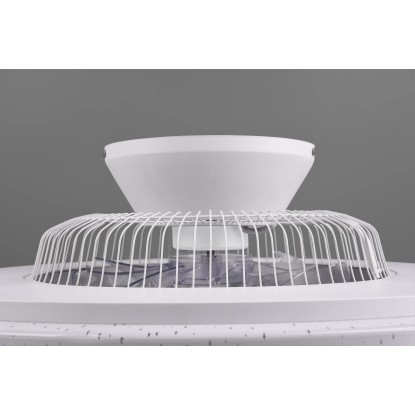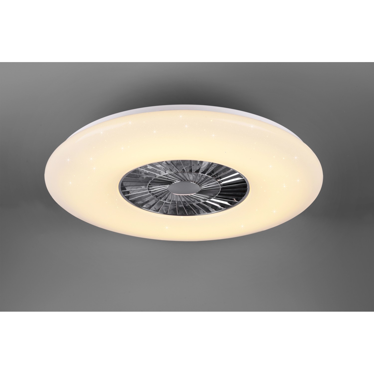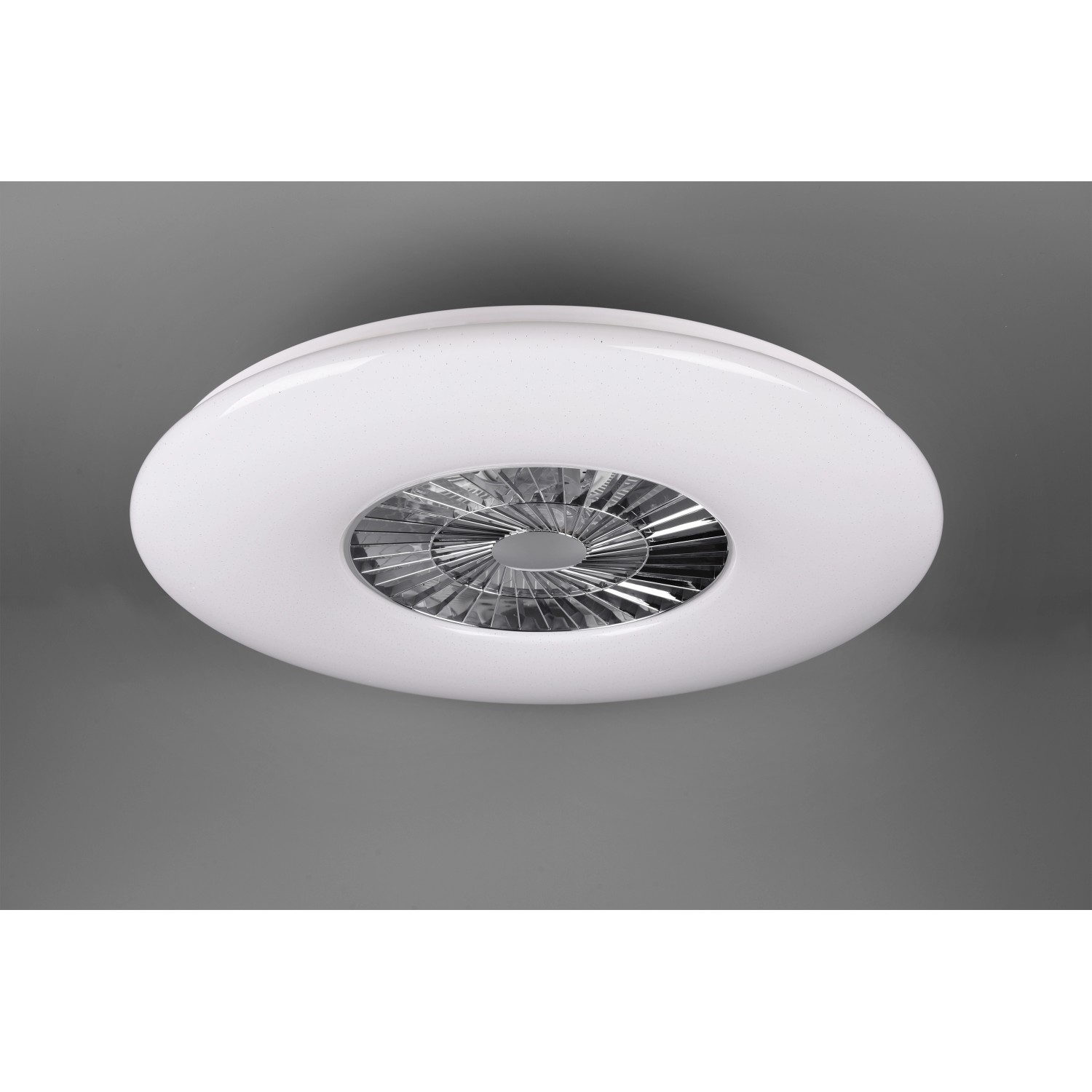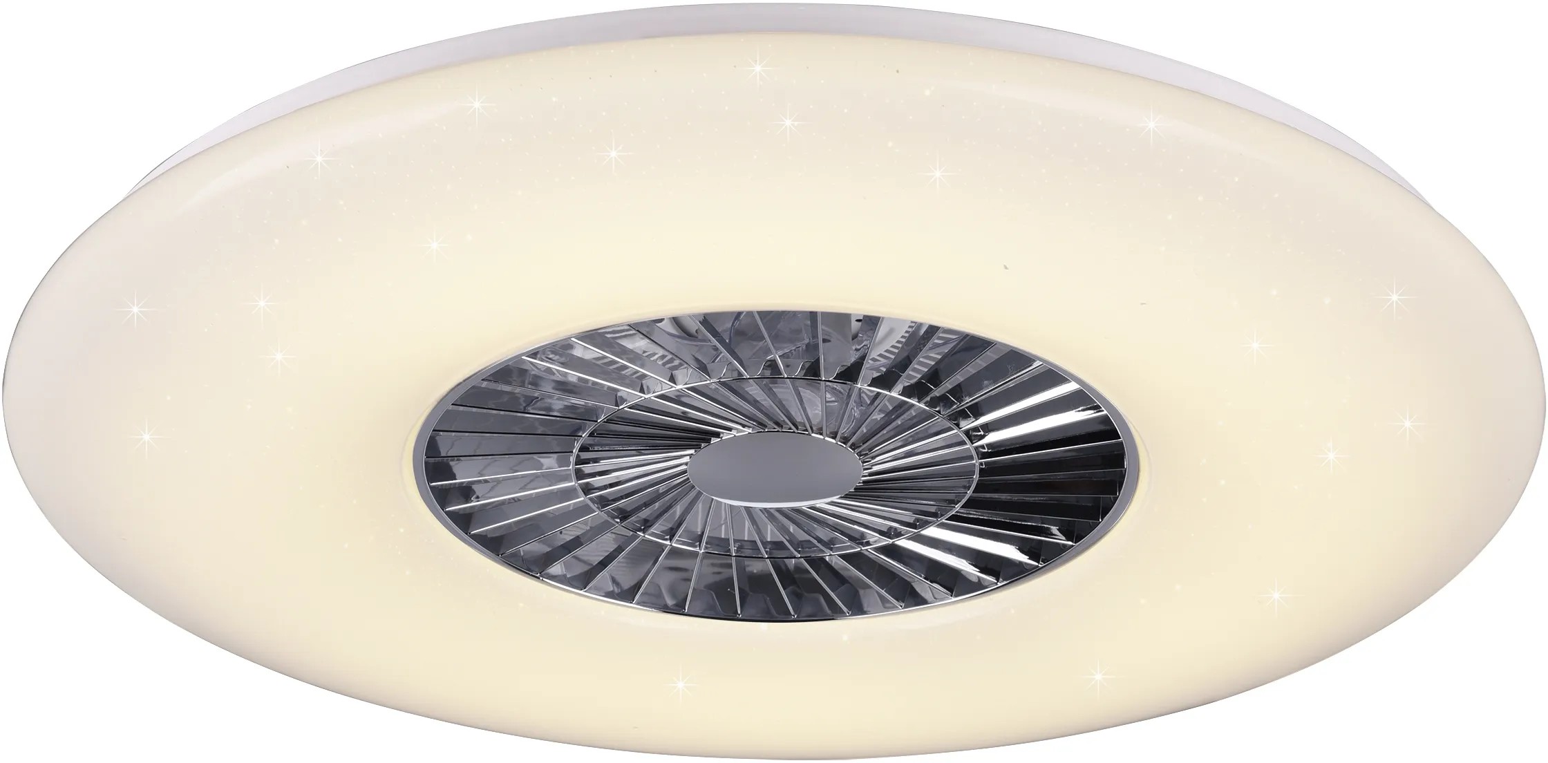 A REALITY VISBY mennyezeti lámpa beépített ventilátorral A csillagos égbolt efektussal rendelkező lámpa ventilátor visszafogott stilusával izléses alternatíva minden lakásban. A lámpa és a ventilátor világítási és ventillációs funkciói távirányítóval állíthatók melyek a következők :színhőmérséklet folyamatosan állítható 3000-6500 Kelvin között ,fényerősség akár 6000 Lm-ig, éjszakai fény funkció ,továbbá beépített ventilátor három sebességfokozattal rendelkezik, így biztosítja a fűtőlevegő ideális elosztását még a hideg évszakban is. A praktikus mennyezeti lámpa ideális irodába, hálószobába vagy bármely olyan lakóhelyiségbe, ahol hűvös és frissítő levegőt kell biztosítani. Teljesítmény 58,2W, 6000 Lm, 3000-6500K. Méret 21 cm x 75 cm.