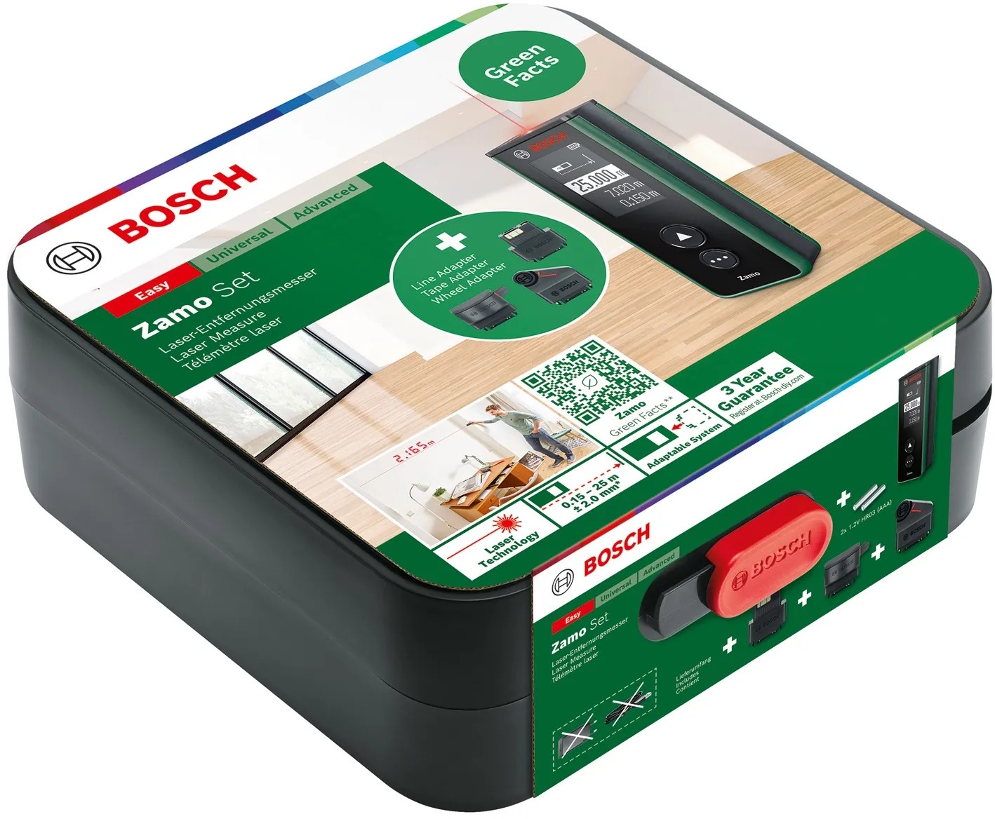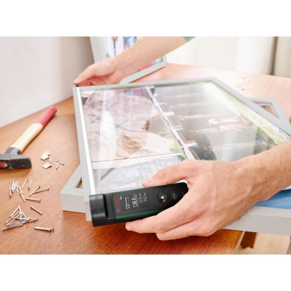 A Bosch Zamo lézeres távolságmérővel könnyedén meghatározhatók helyiségek hosszúsági vagy magasság méretei, akár bútorok elrendezéséről, akár felújításkor a festéshez, ill. padlóburkoláshoz szükséges anyagmennyiségek meghatározásáról van szó. Pozícionálás, célzás, és egyetlen gombnyomással a Zamo akár 25 méteres távolságokat is képes mérni.