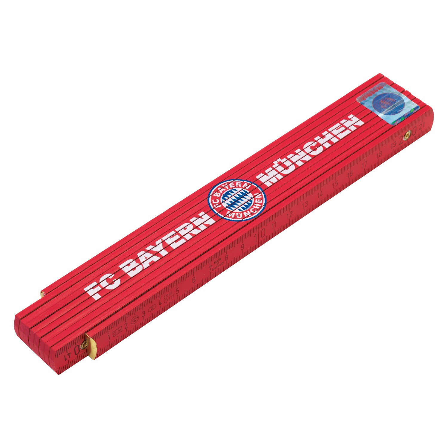 A fa részekből álló, FC Bayern mintájú LUX-TOOLS mérőléc 2 m hosszú, és 10 tagból áll.