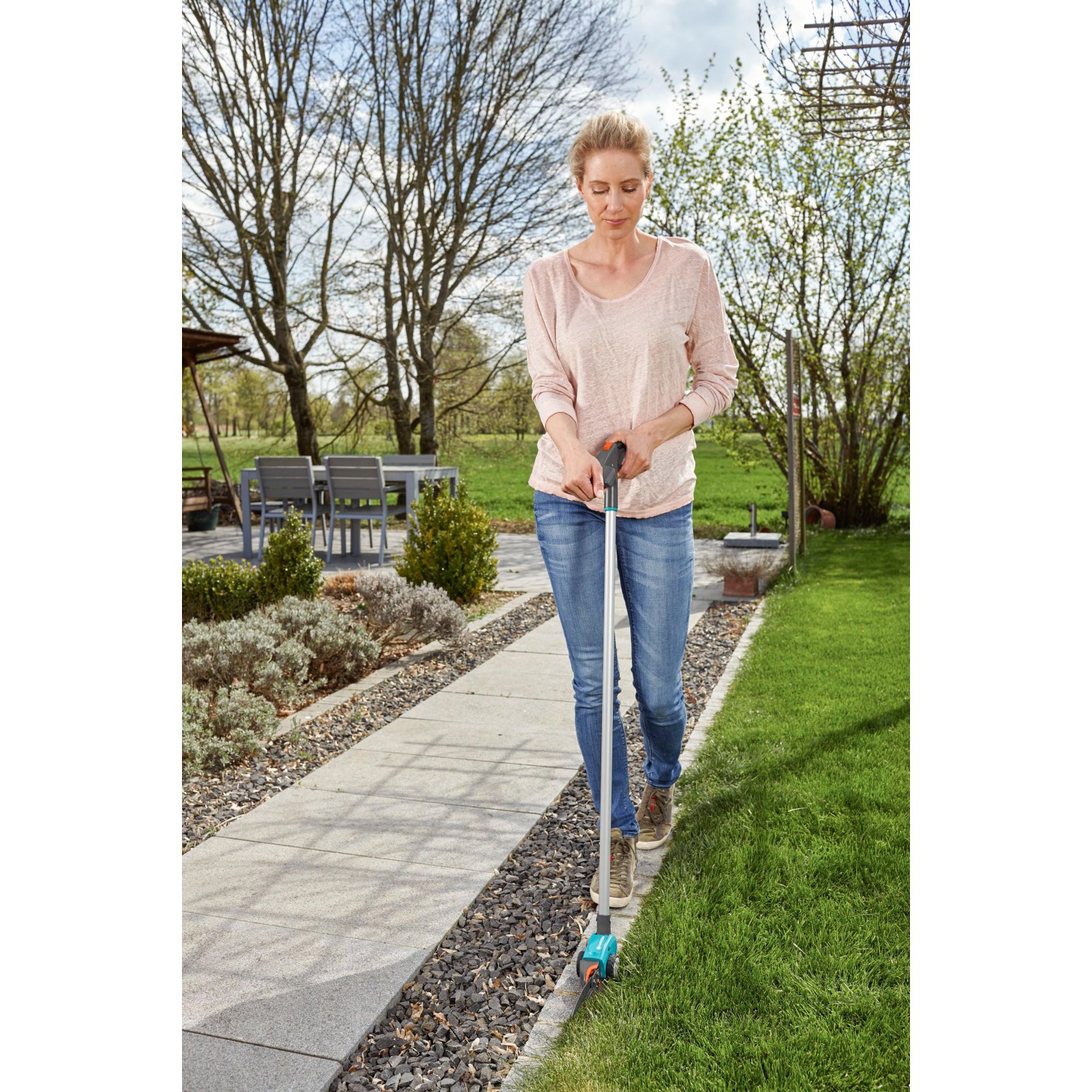 A Gardena Comfort nyeles fűnyíró olló lehetővé teszi a gyepszegélyek könnyű és pontos vágását egyenes, a hátat kímélő testtartásban.