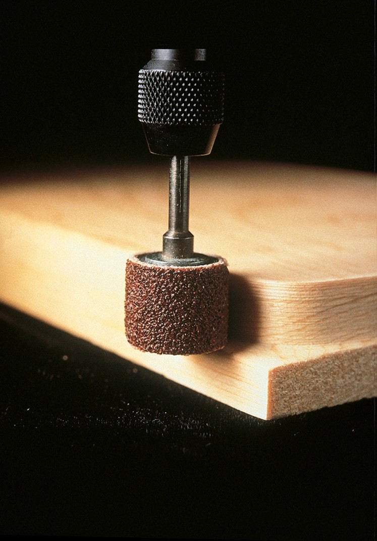 A csiszolószalag (407) alkalmas fa vagy üvegszál durva alakítására és simítására, valamint fémfelületek rozsdamentesítésére és gumifelületek alakítására. A szár átmérője: 3,2 mm, a munkaátmérő: 13 mm, szemcseméret: 60. A maximális fordulat percenként: 35000.