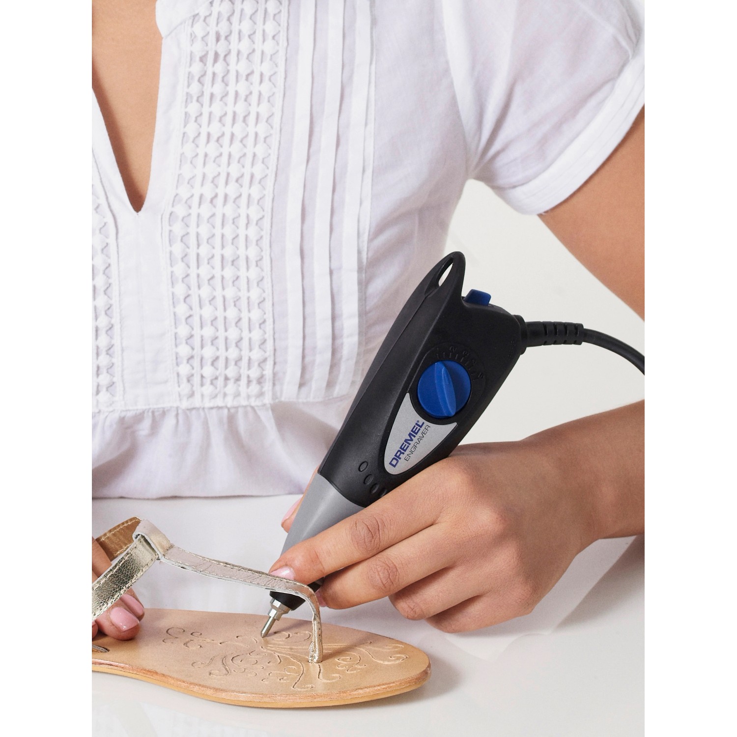 A Dremel 290-3 gravírozó változtatható munkamélységével tökéletesen alkalmas számos anyag, pl. fém, üveg, fa, műanyag, kerámia és bőr gravírozására.