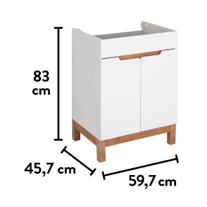 83 cm x 59,7 cm x 45,7 cm (Ma x Sz x Mé) méreteinek köszönhetően sok tárolóhelyet biztosít a mosdó alatti szekrény. A Soft-Close-funkciós ajtók mögött rendezetten tárolhatod a fürdőszobai tartozékokat. A fürdőszobai szekrény önállóan összeszerelhető: Gyorsan és egyszerűen összeszerelheted és azonnal használhatod.