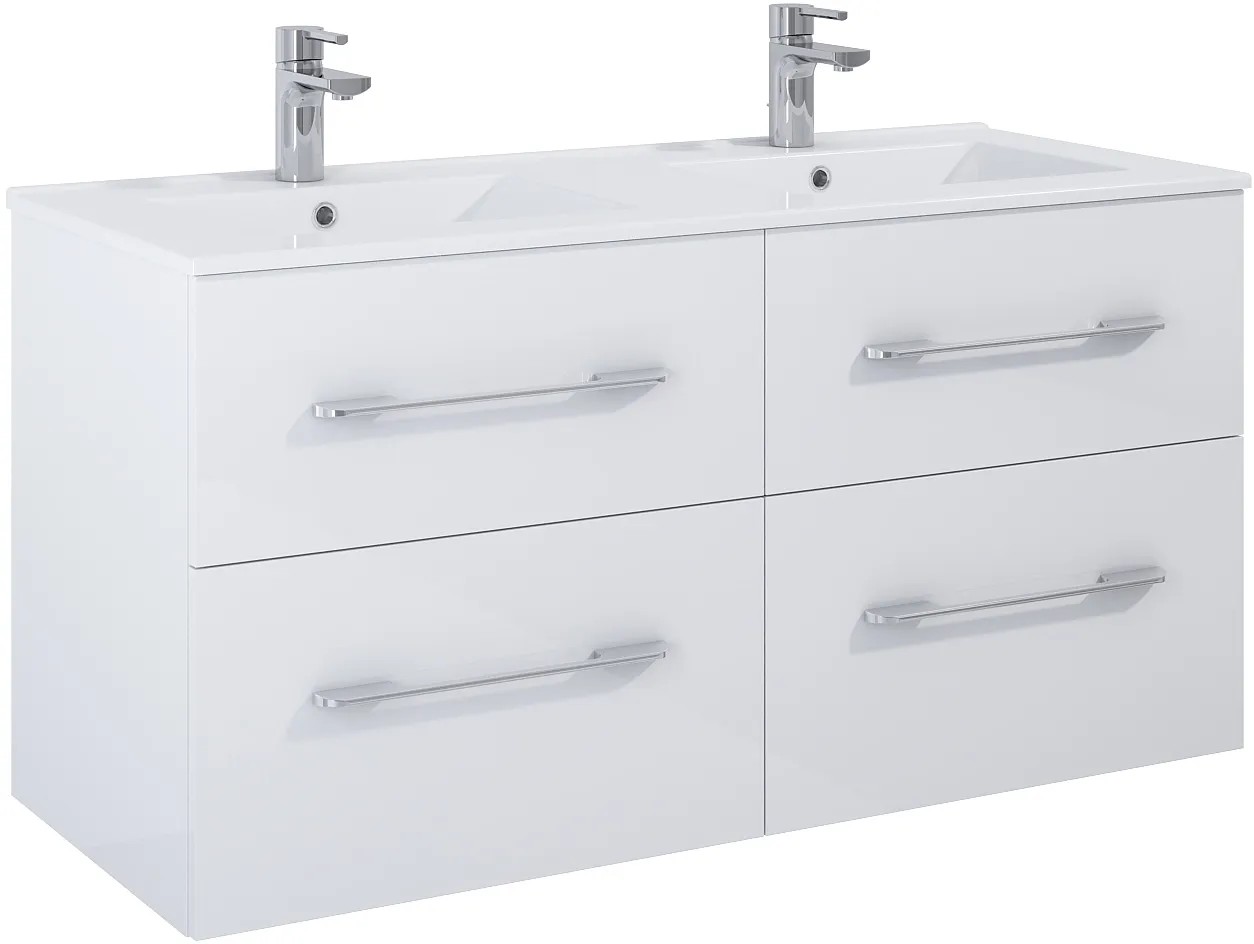 A Madrid mosdó alatti szekrény vonzó megjelenésével és kiváló minőségű kidolgozásával nyeri meg a vásárlót, és minden fürdőszoba díszévé válik. A magasfényű fehér korpusz és frontok modern formatervét krómozott fogantyúk teszik teljessé.