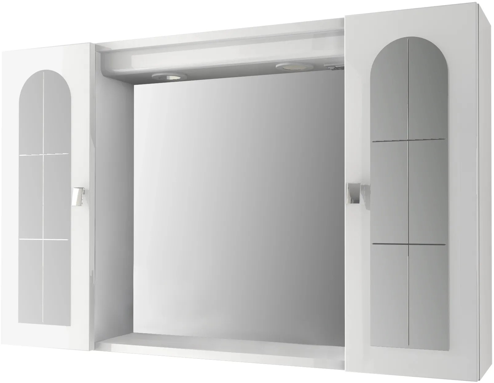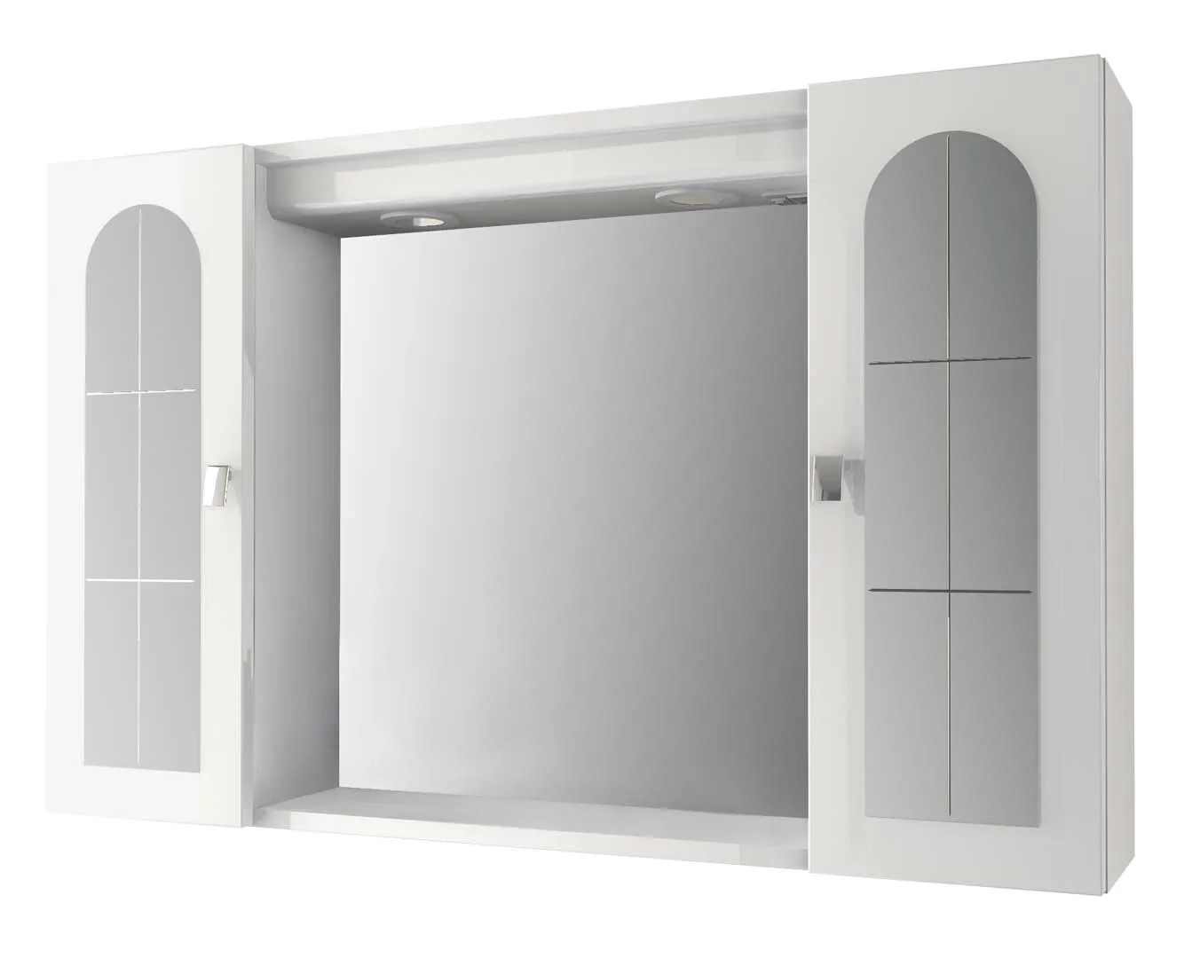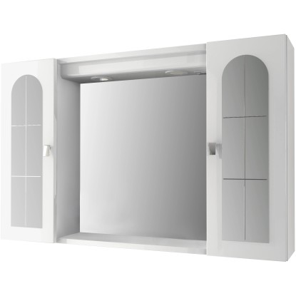 A PORDENONE tükrös szekrényt klasszikus megjelenés jellemzi, és minden lakberendezési koncepcióhoz illik. A 2 ajtós tükrös szekrény belsejében 2-2 üveg polclap található. Korpusza UV-lakkozott, a frontok MDF-ből készültek. Felülete sima, az illesztések nagyon finoman kerültek kialakításra, és speciális lakkbevonatot kaptak. Ennek köszönhetően a szekrény víztaszító és könnyen ápolható. A tükrös szekrényt két darab cserélhető, energiatakarékos LED-es díszléccel látták el. A tükrös szekrény közepén egy tükör található, amelyhez egy polc is tartozik. A tükrös szekrény előszerelve kerül kiszállításra, és kizárólag a megadott rögzítő szerkezettel szerelhető fel a falra.