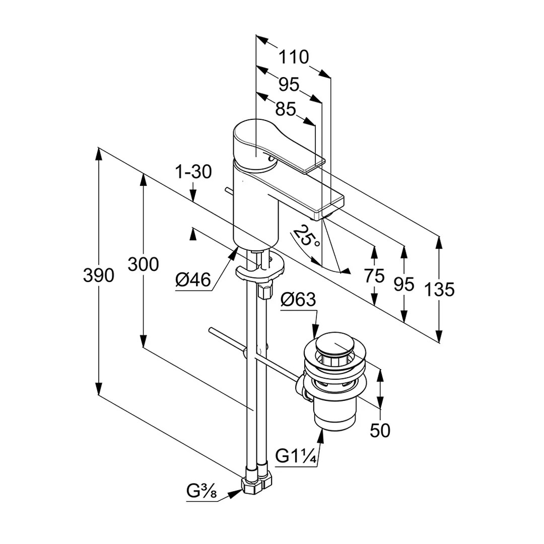 Kludi Zenta SL mosdócsaptelep 75 aut. leeresztőszeleppel
