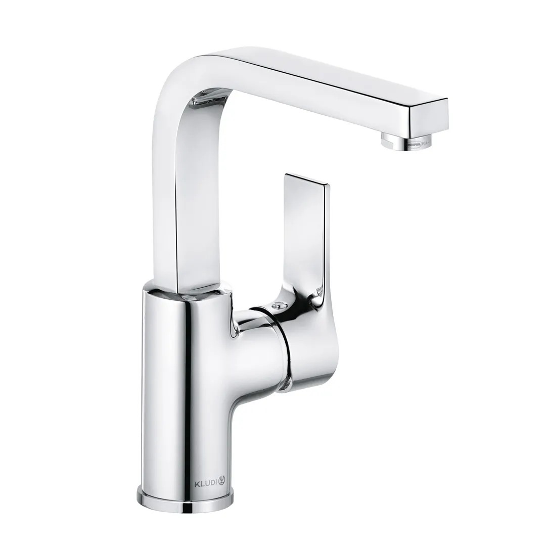Kludi Zenta SL egykaros mosdócsap. Teli fogantyú, egylyukas szerelési mód. Kerámia vezérlőegység állítható hőfokkorlátozóval, perlátor M 24 x 1, névleges vízmennyiség 7 l/perc 3 bar nyomáson, elfordítható kifolyó (360°). Lefolyógarnitúra nélkül, flexibilis csatlakozás G 3/8, gyors rögzítő rendszer.