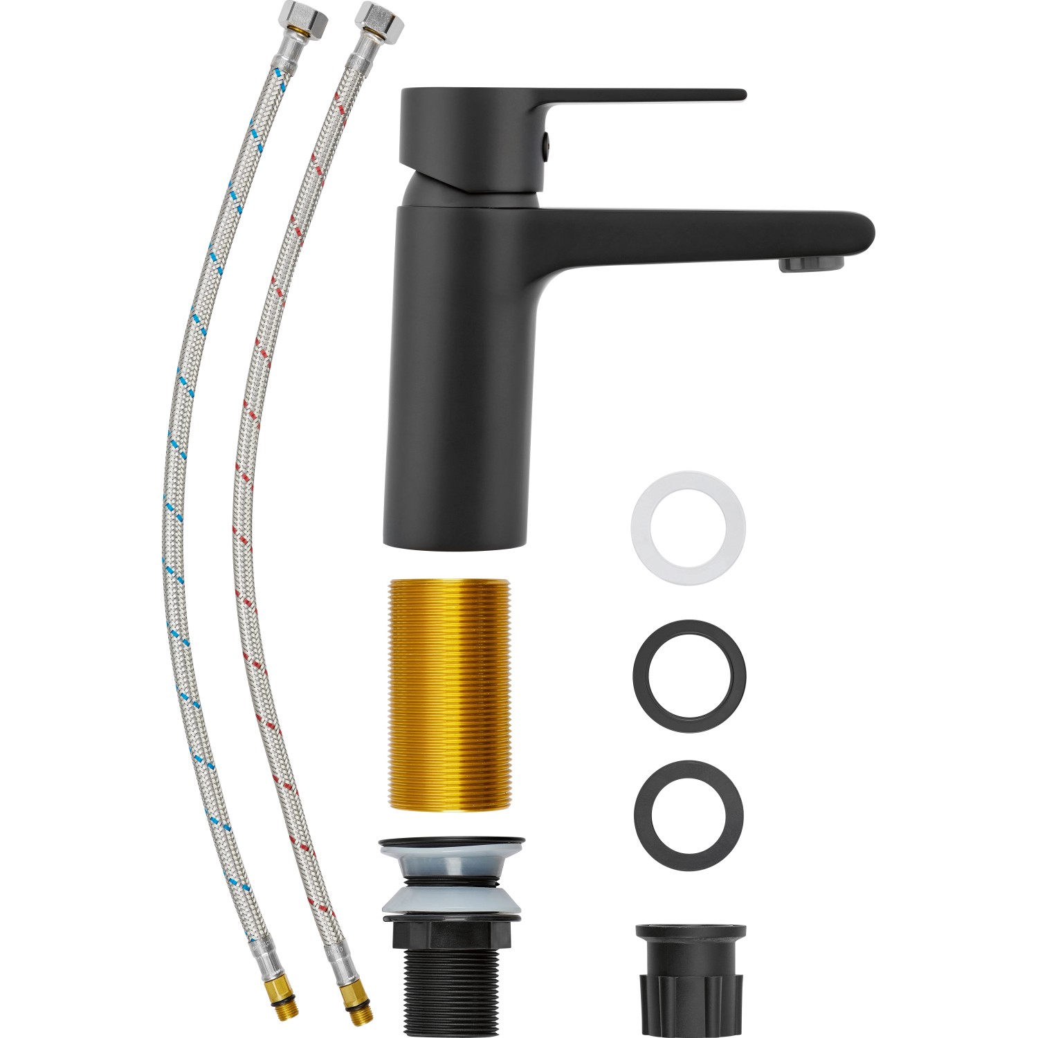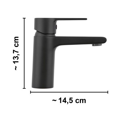 A Bisenzio termékcsalád egykaros mosdócsaptelepe tökéletes választás minden modern fürdőszobába. A matt fekete színű csaptelep elegánsan illeszkedik a különböző dizájnkoncepciókba, és elegáns megjelenést biztosít. A praktikus egykaros mechanizmusnak köszönhetően a kezelés kényelmes és precíz.