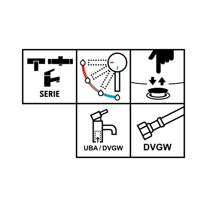 A csaptelep nemcsak vizuálisan igényes, hanem technikailag is átgondolt. Két tömlővel kerül kiszállításra, és szabványos 3/8"-os kivitelben rendelkezik, így gond nélkül beszerelhető. Az UBA/DVGW tanúsítvány biztosítja, hogy a csaptelep megfelel a legszigorúbb minőségi és biztonsági követelményeknek.